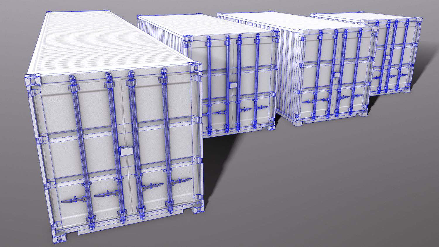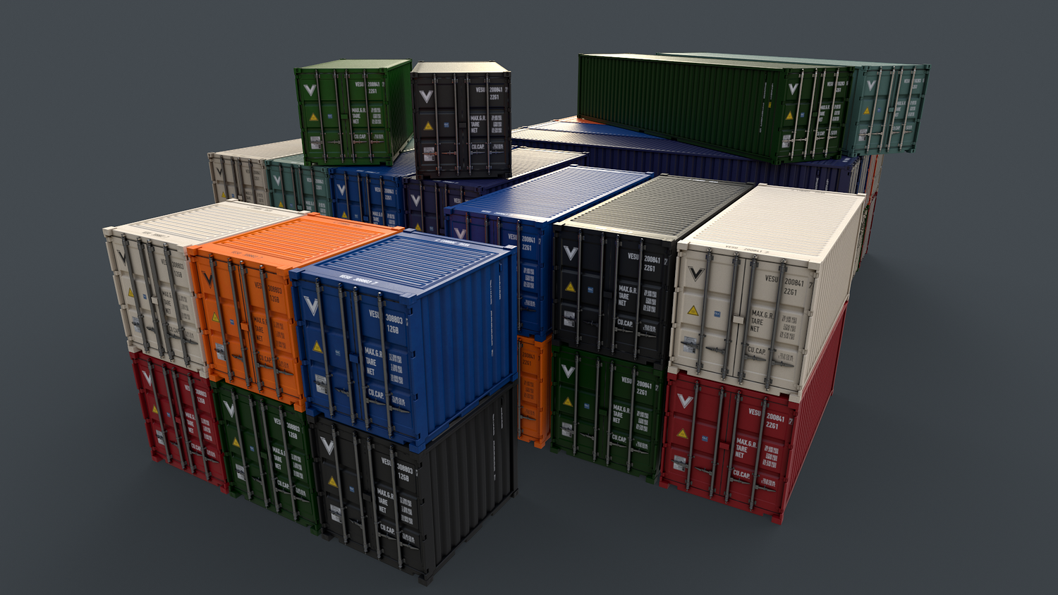 - 20ft Cargo ContainerV2 Multi Color 10 in 1 x (Clean,Dirty,Rusty) Polygons=3281 Verts=3796
