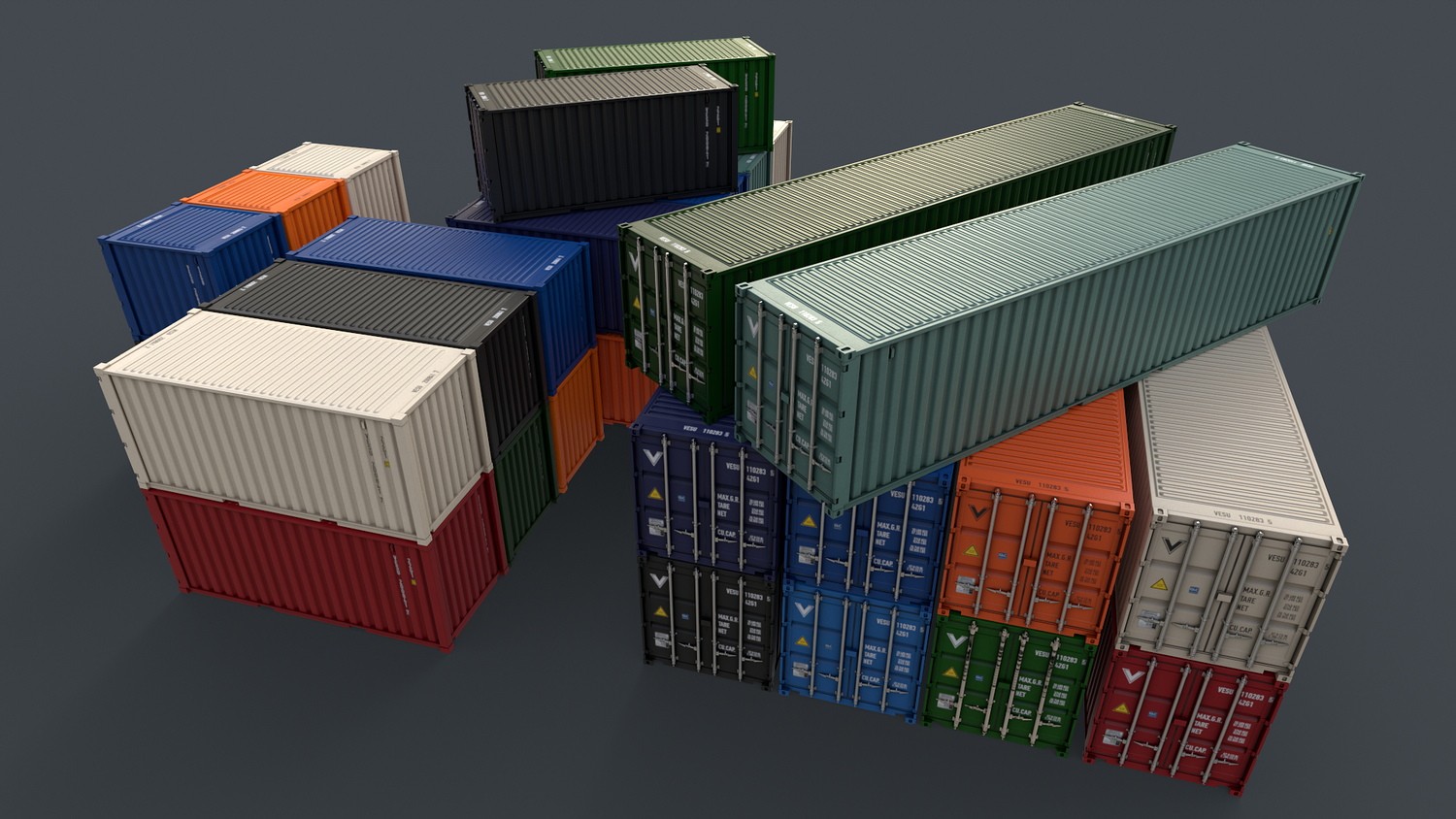 - 40ft Cargo Container Multi Color 10 in 1 x (Clean,Dirty,Rusty) Polygons=3487 Verts=4188