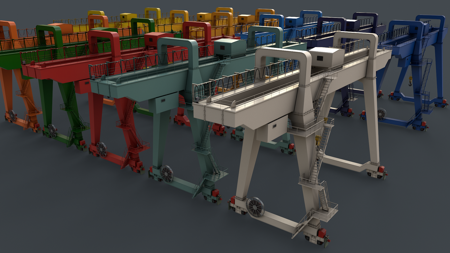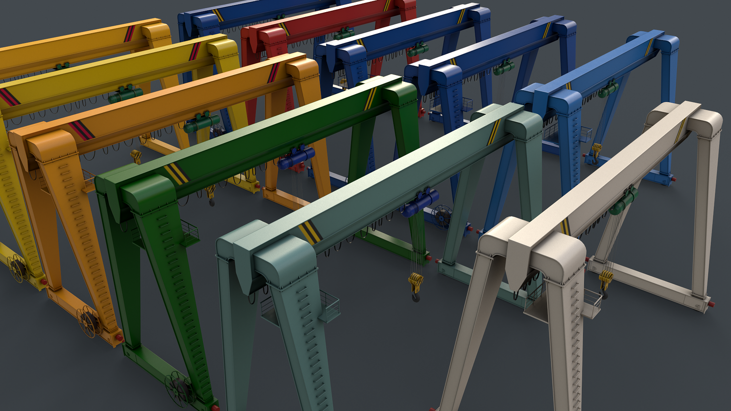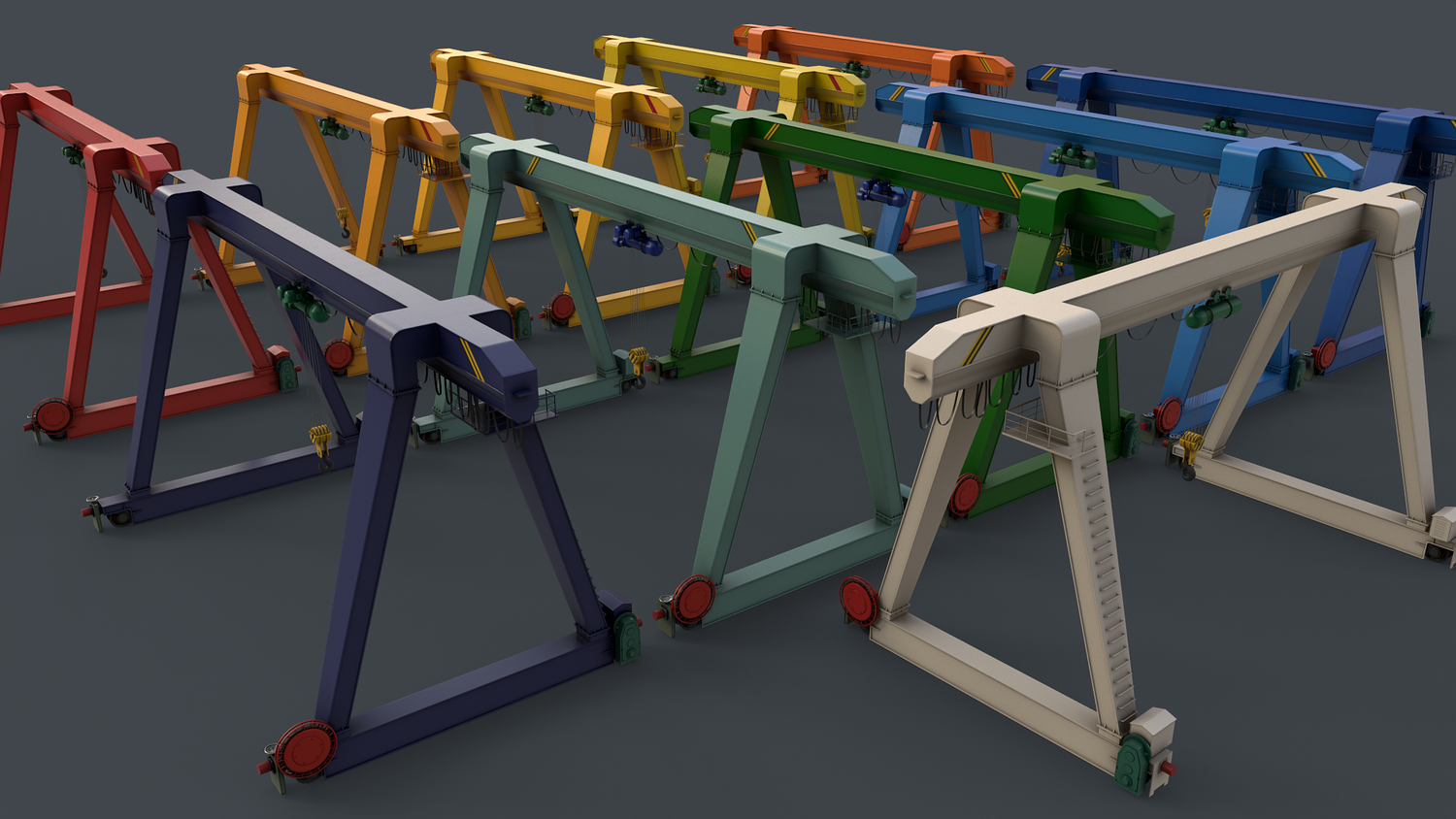 - Double Girder CraneV2 Multi Color 11 in 1 x (Clean,Dirty) Polygons=33892 Verts=38359