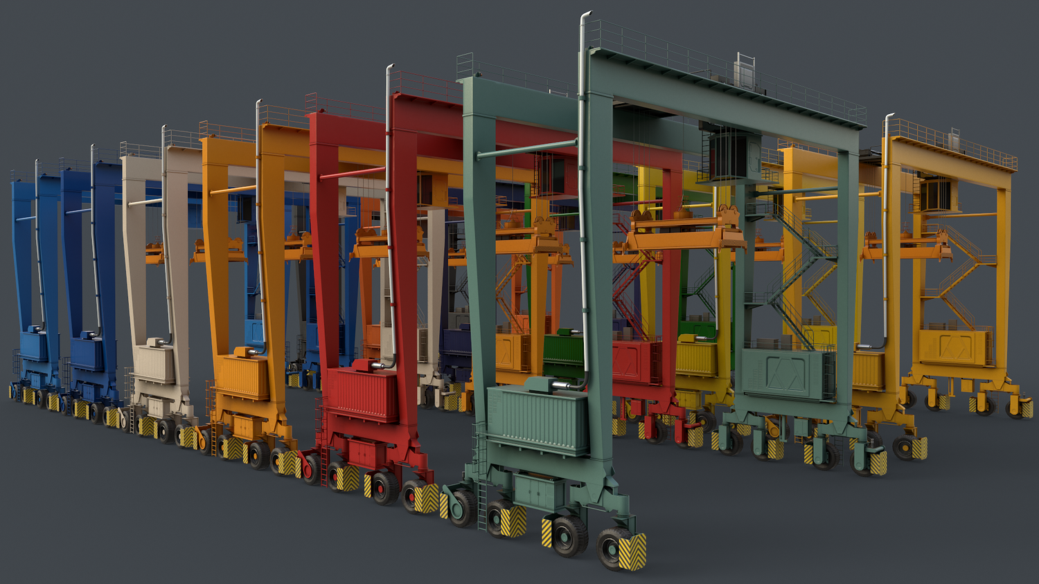 - Rubber Tyred CraneV1 Multi Color 12 in 1 x (Clean,Dirty) Polygons=28874 Verts=33273