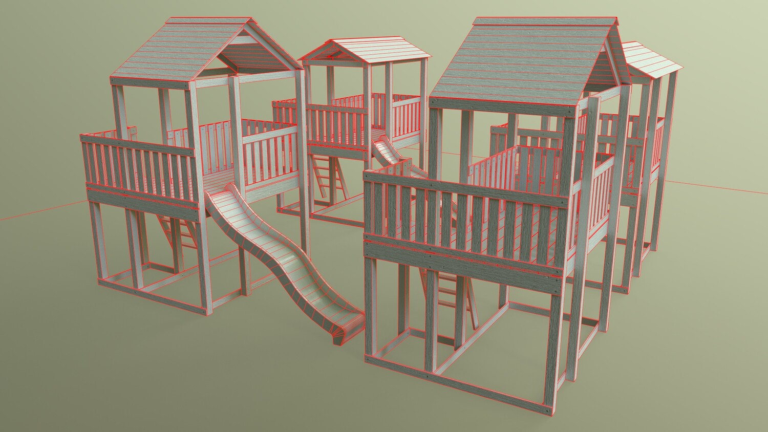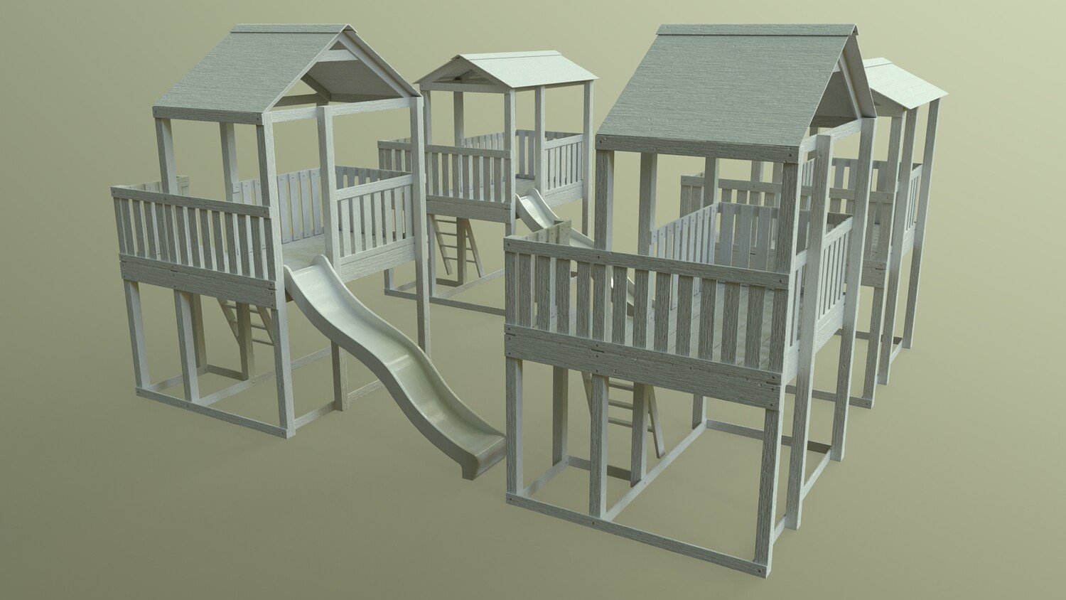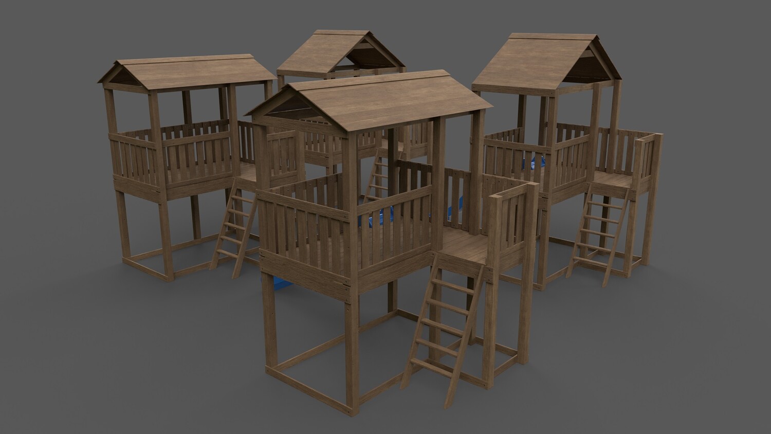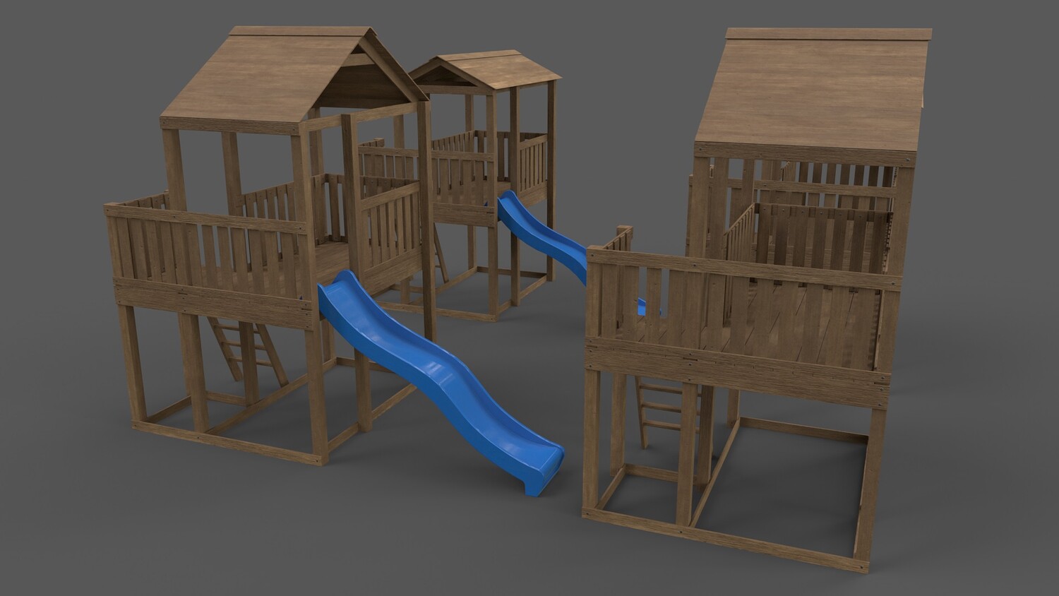 [ kids children play area ground wooden playground park house jungle gym funfair fun fair outdoor equipment fitness slide swing sports game toy exterior tunnel hut public amusement gorilla playsets playset wood wooden 3d ar vr unity cryengine unreal engine low poly game ready amazon lumberyard realistic pbr augmented virtual reality vray v-ray arnold photoreal real time model asset ruin rusted ]