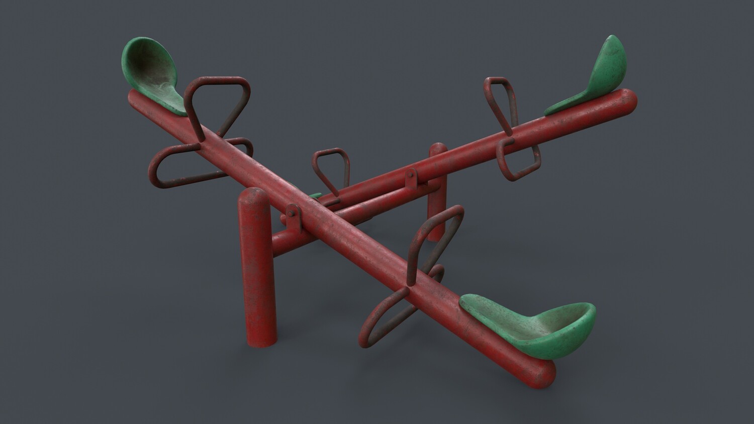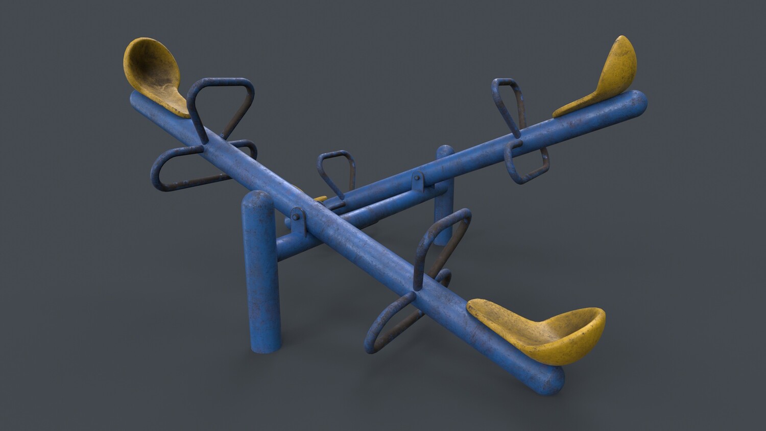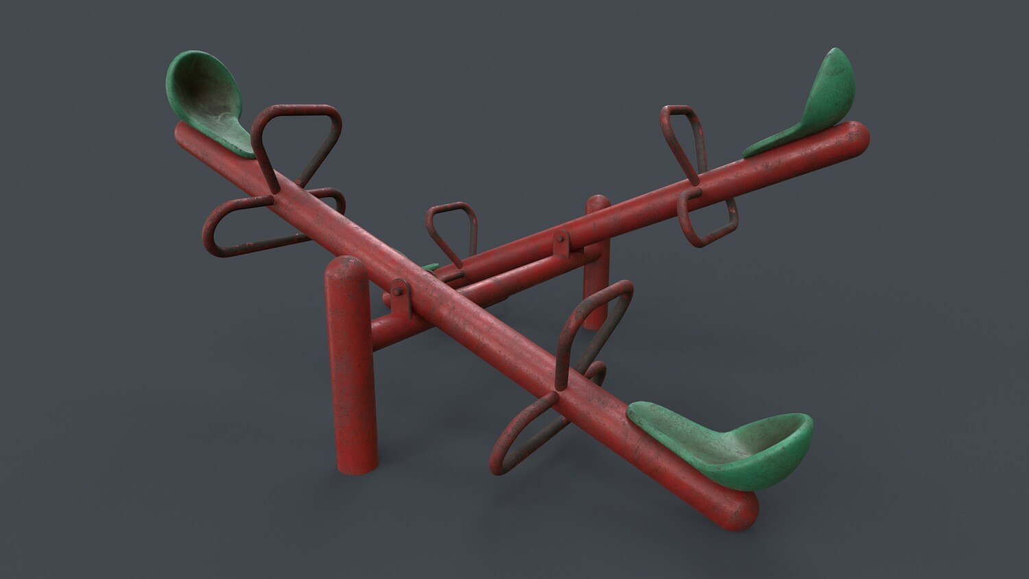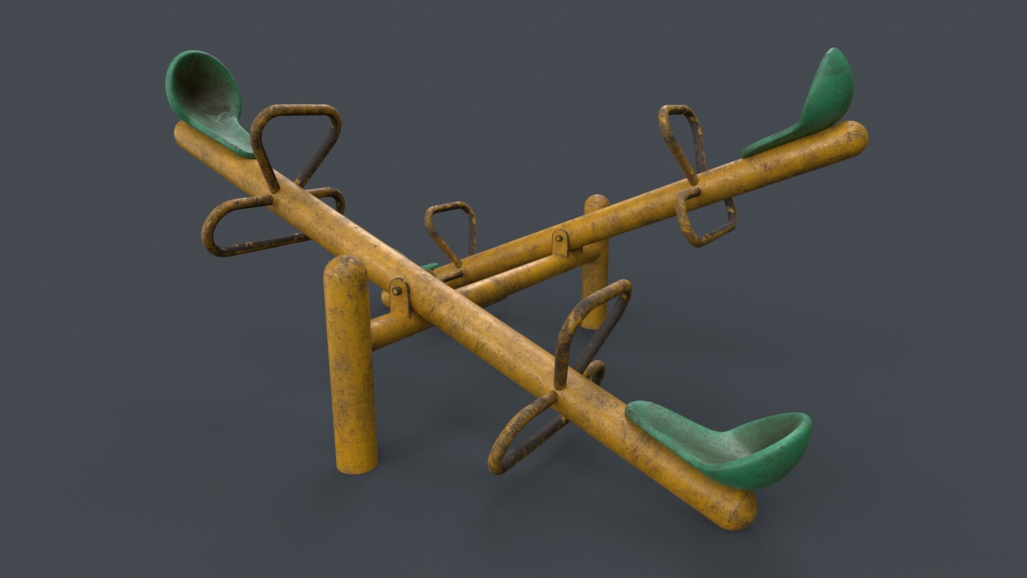 [ seesaw teeter totter Single Double seater two four ride spring swing kids children ground play park amusement equipment Recreation fun fitness sports backyard jungle gym funfair fair exterior public 3d ar vr unity cryengine unreal engine low poly game ready amazon lumberyard realistic pbr augmented virtual reality vray v-ray arnold photoreal real time model asset ruin rusted ]