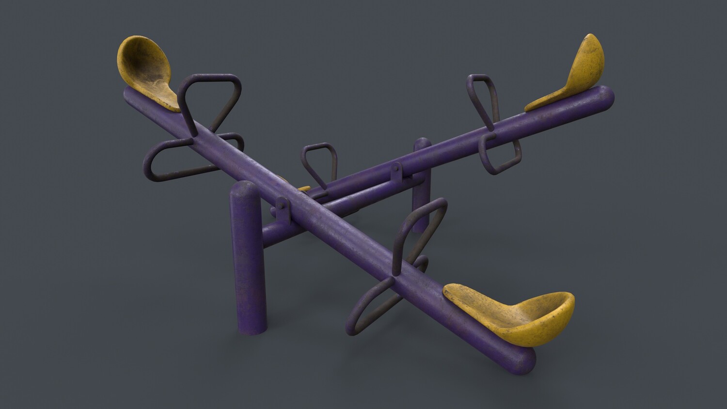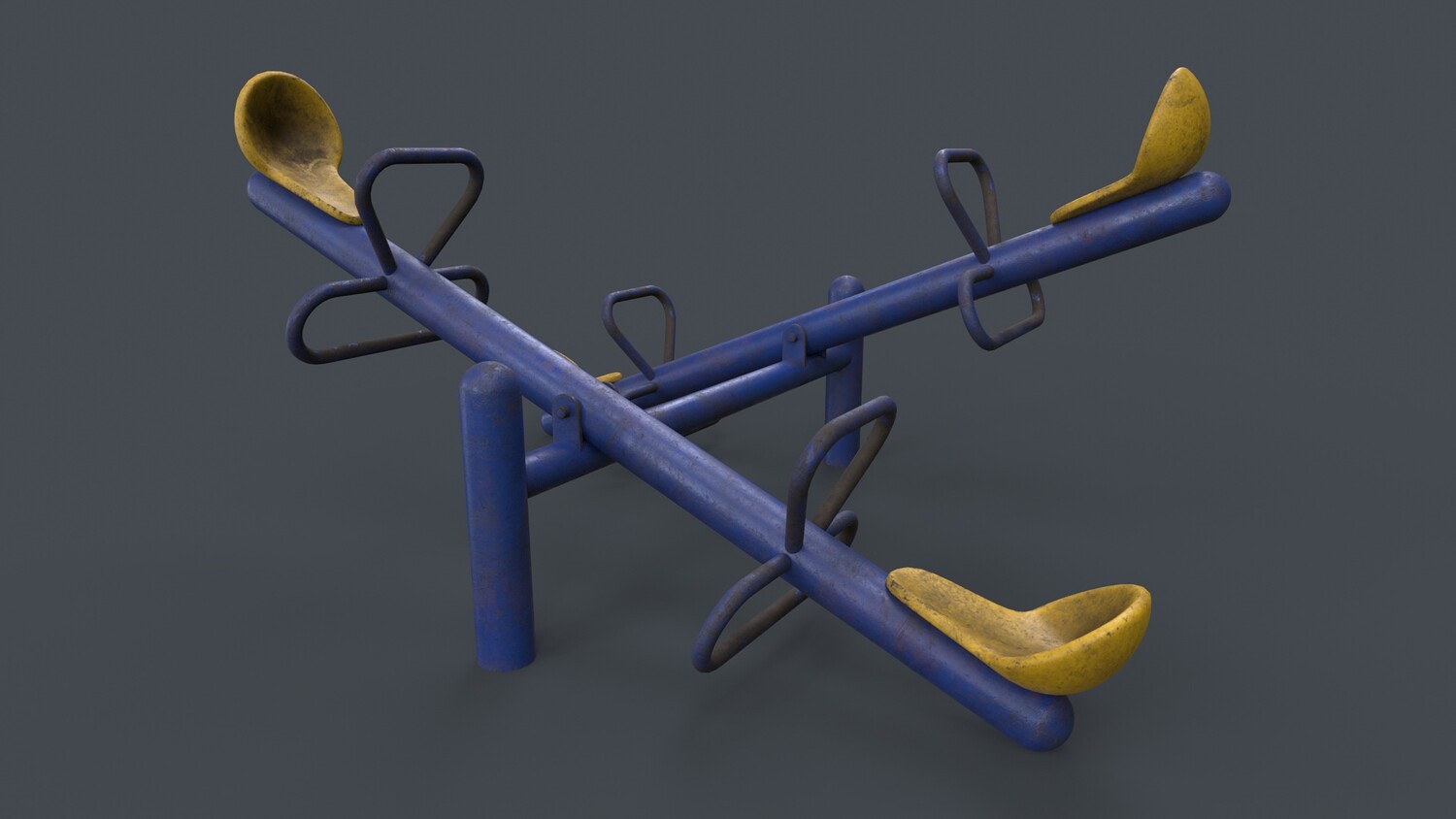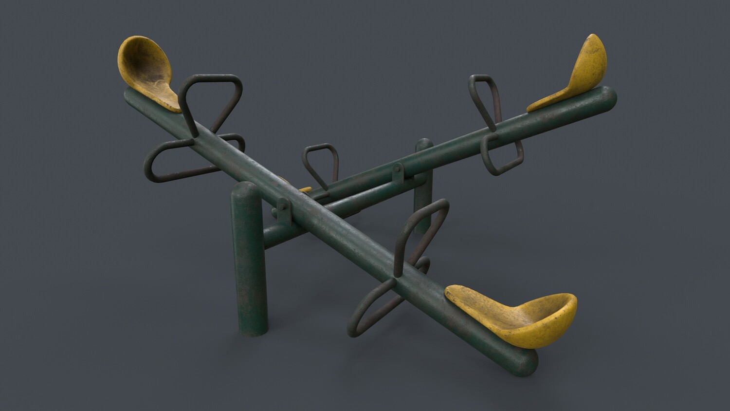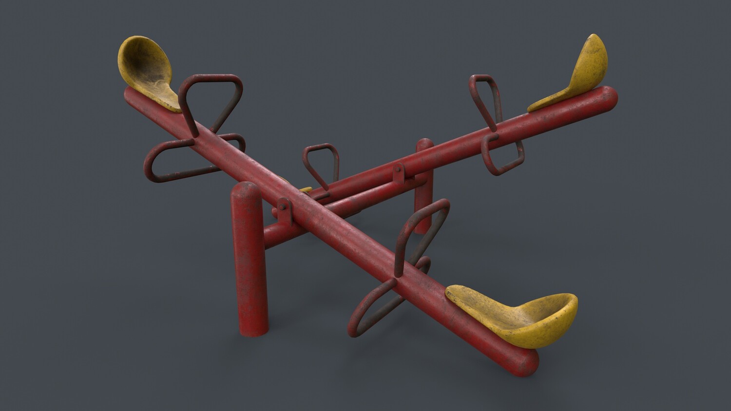 [ seesaw teeter totter Single Double seater two four ride spring swing kids children ground play park amusement equipment Recreation fun fitness sports backyard jungle gym funfair fair exterior public 3d ar vr unity cryengine unreal engine low poly game ready amazon lumberyard realistic pbr augmented virtual reality vray v-ray arnold photoreal real time model asset ruin rusted ]