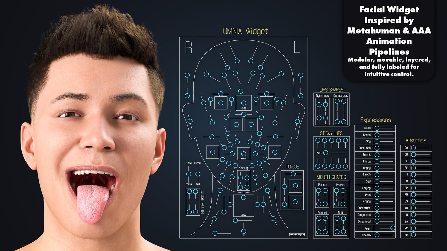 Built with the OMNIA 2 Rig System and enhanced by the OMNIA Pro Add-on, this edition provides fast performance, efficient topology, and seamless retargeting compatibility with major animation platforms.