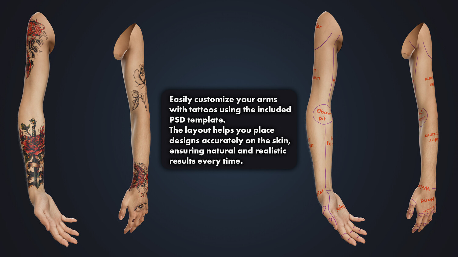 Arms_Template.psd) - Tint, bump, and blend strength controls for realistic ink behavior