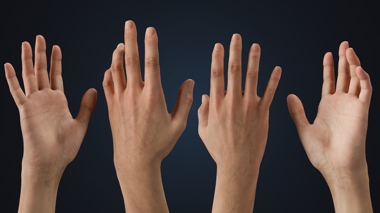 Balanced, athletic arms with soft anatomical detail and neutral skin tone. Subtle veins and surface texture add realism, with short, natural nails and smooth shading suitable for any character type.