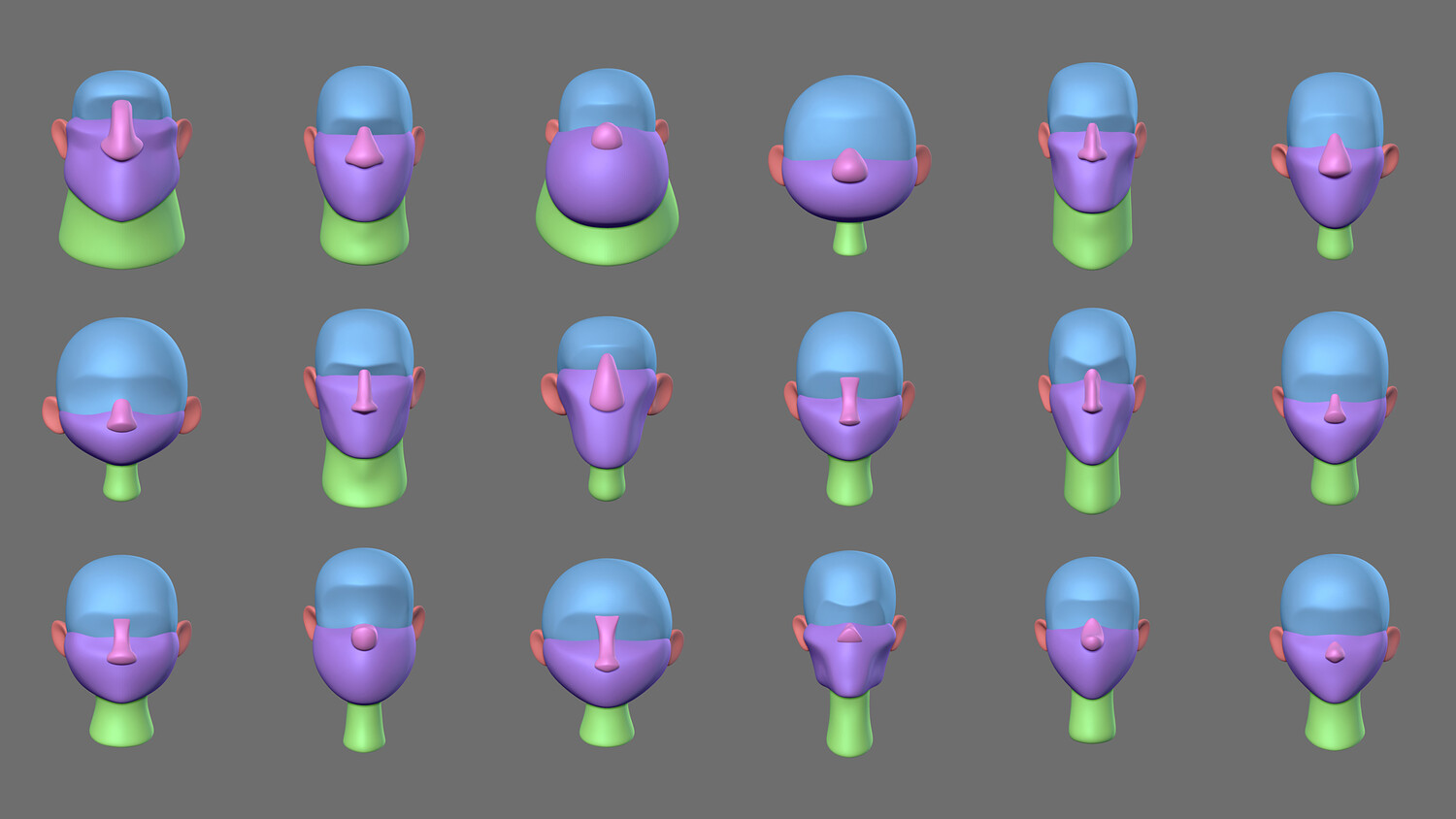 MEGA Stylized Head Blockout Basemesh Collection