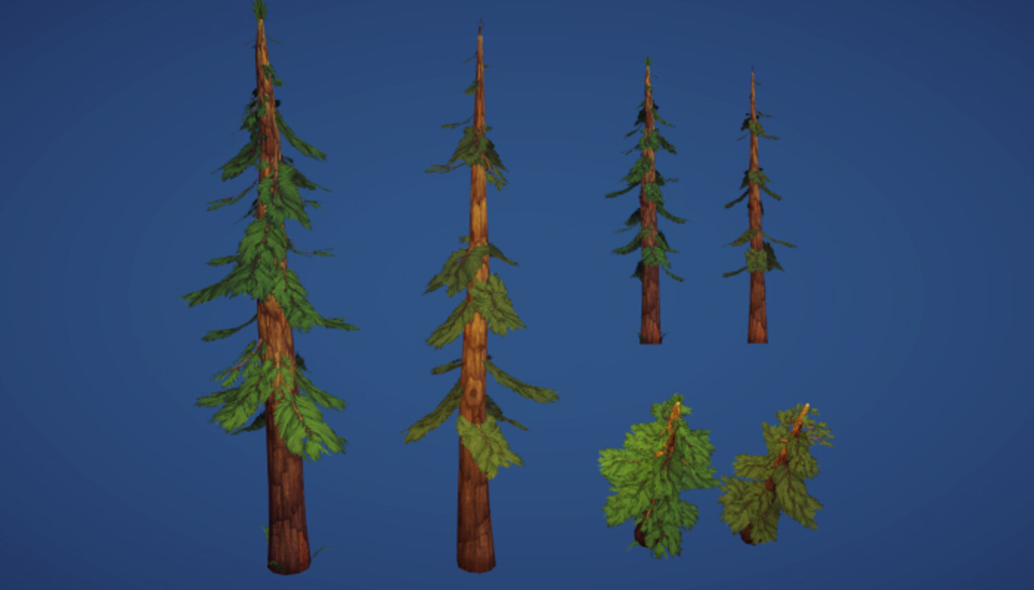 This Set contains 4 low poly trees Cartoon style textures, format PNG + alpha Normals map included UV maps resolution 2048×2048 Formats: FBX, OBJ and Unity package Total Poly count 1160