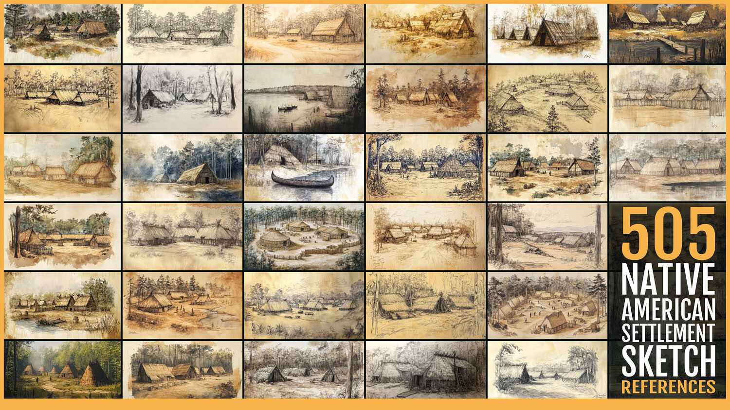 505 Native American Settlement Sketch 🔘 Content : - high-quality images -jpeg -4K Resolution