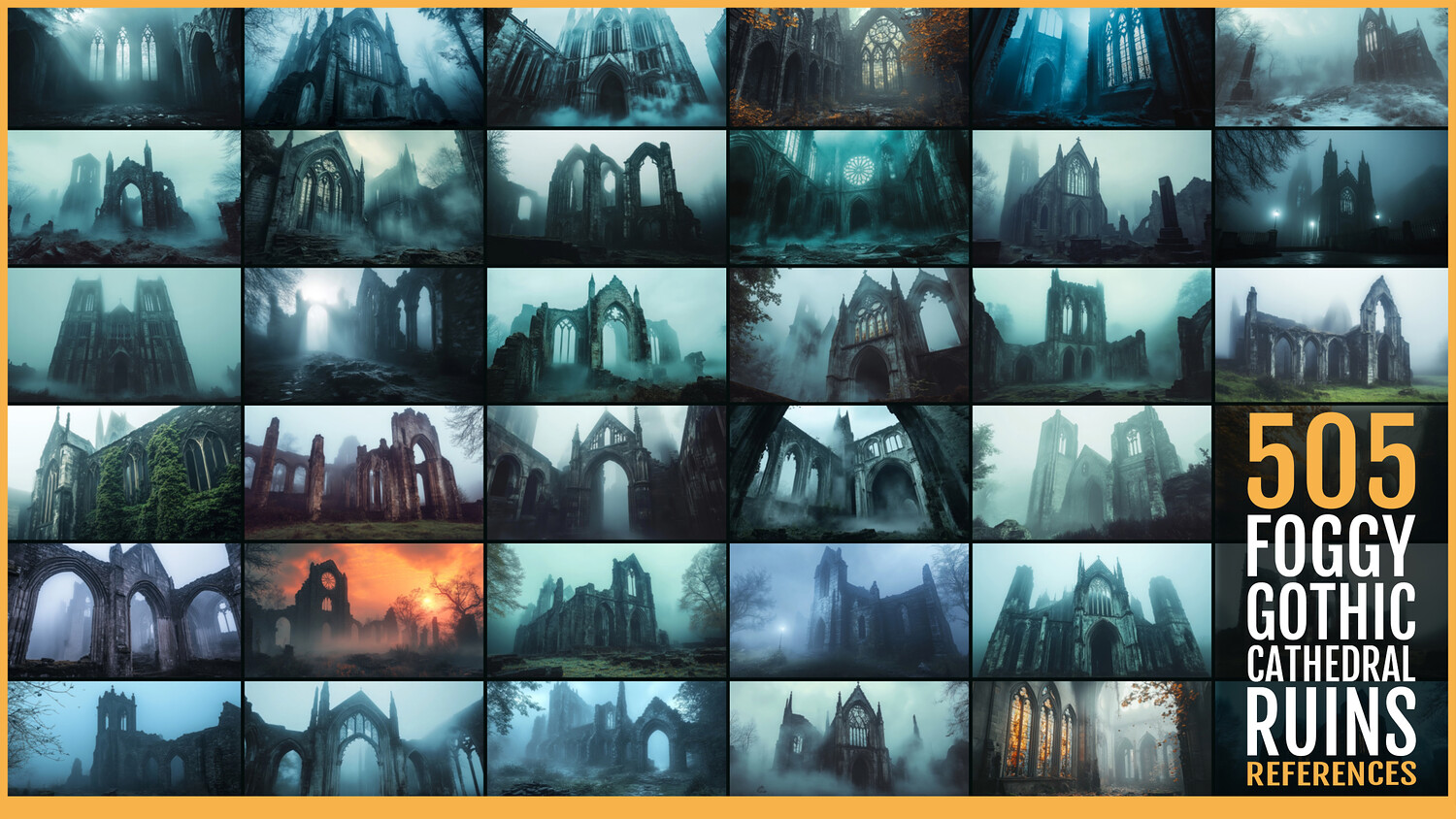 505 Foggy Gothic Cathedral Ruins 🔘 Content : - high-quality images -jpeg -4K Resolution