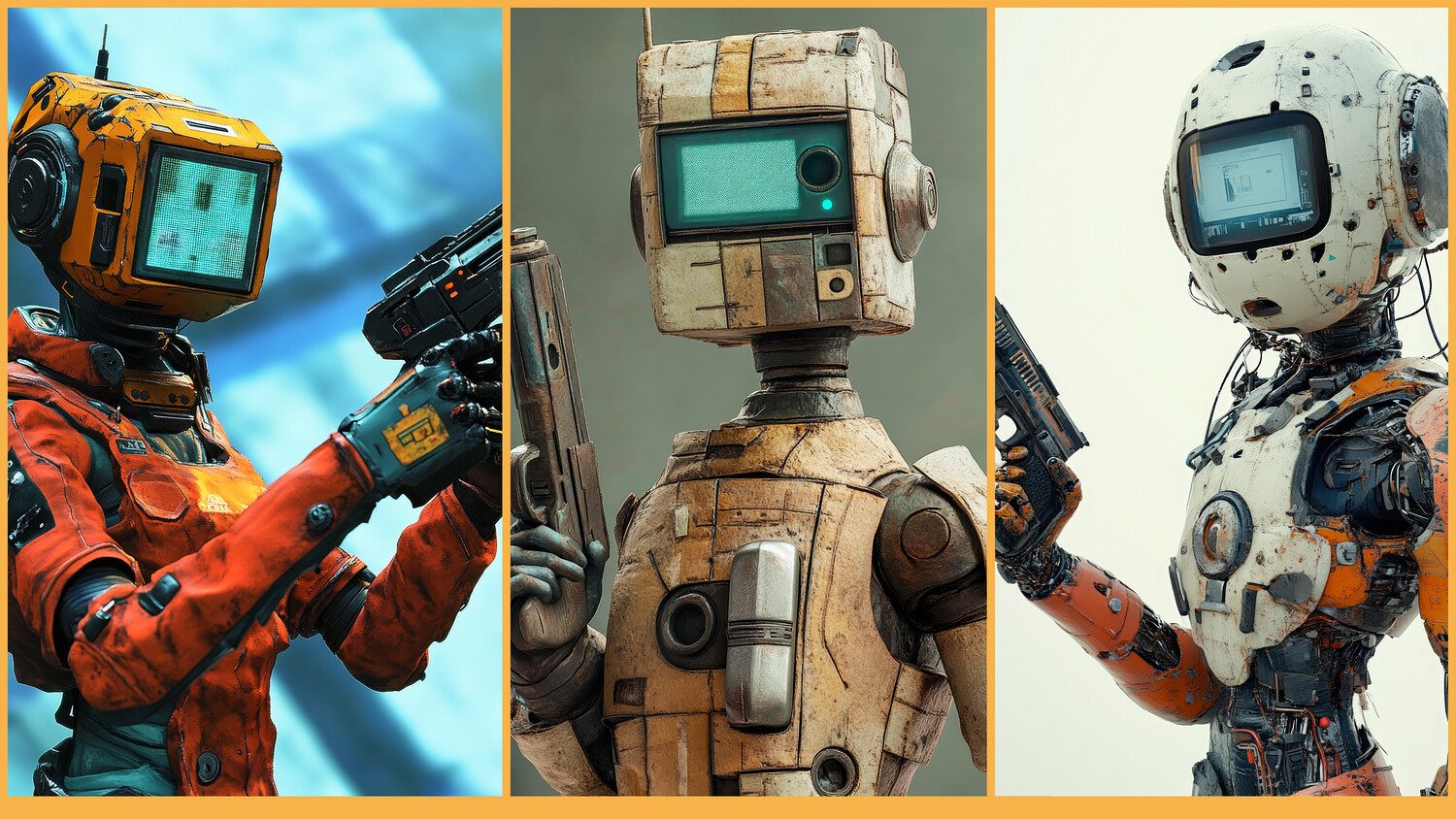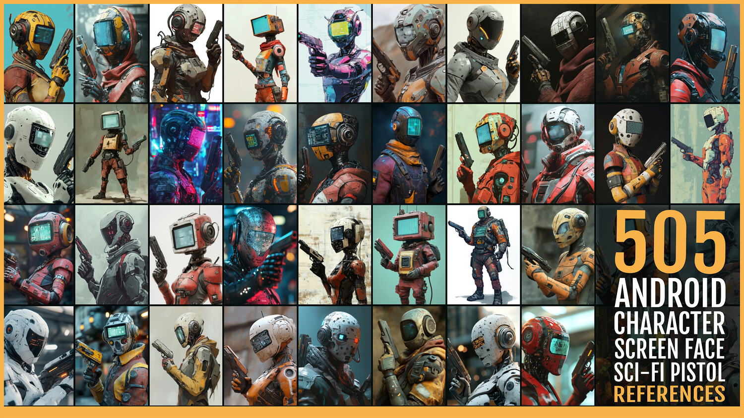 505 Android Character with Screen Face and Sci-Fi Pistol 🔘 Content : - high-quality images -jpeg -4K Resolution