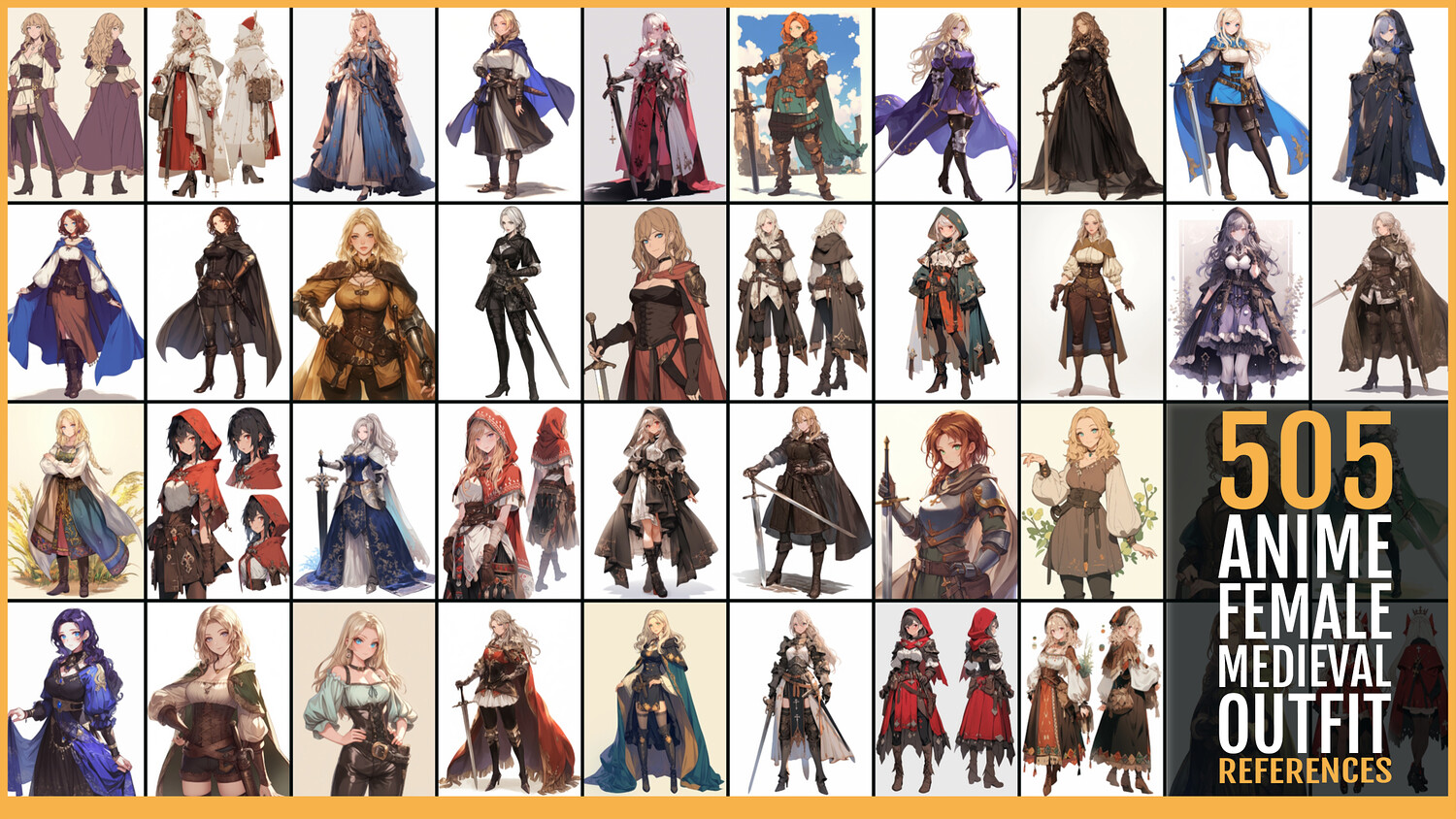 505 anime female medieval Outfit 🔘 Content : - high-quality images -jpeg -4K Resolution