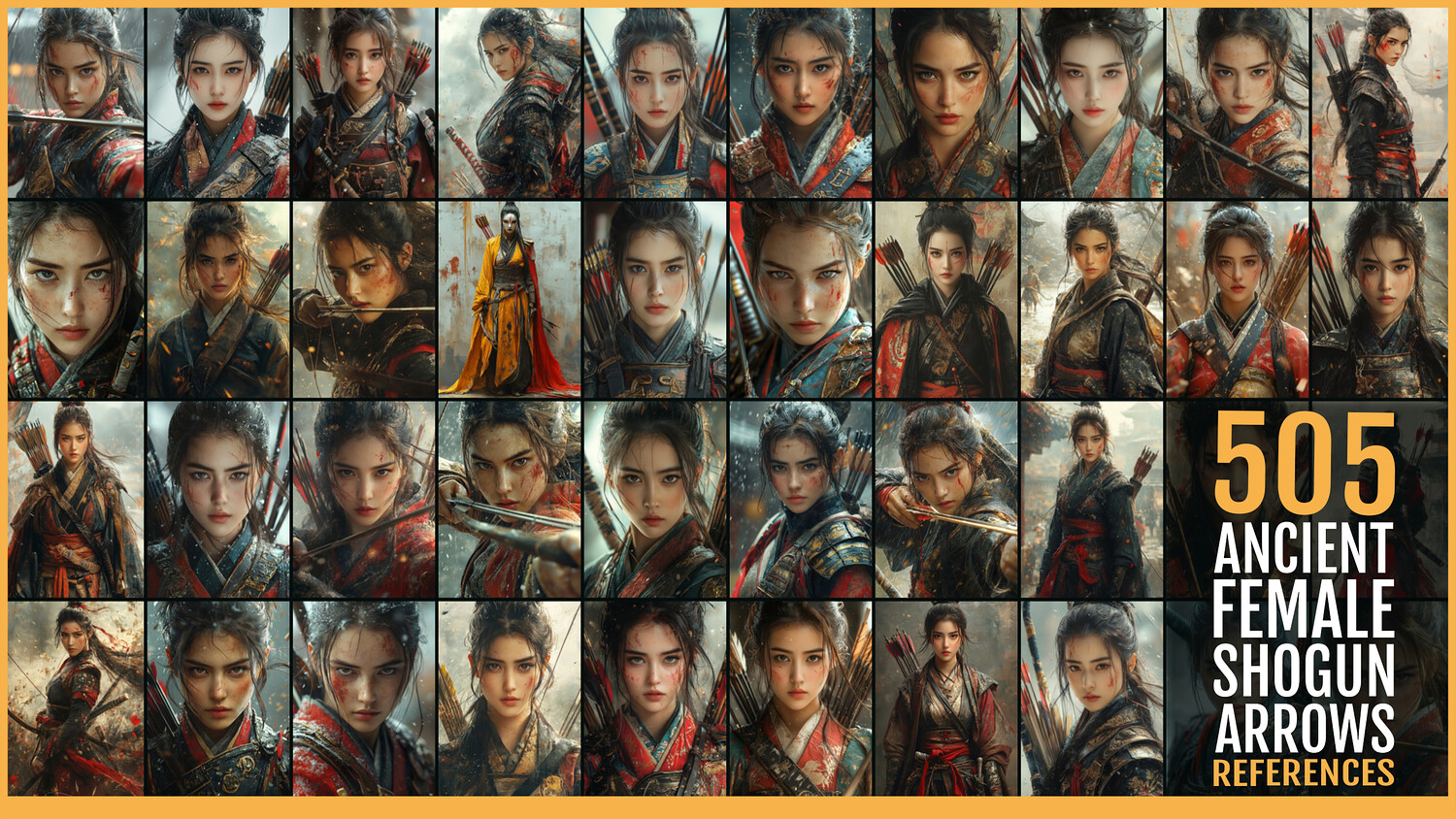 505 Ancient Female Shogun with Arrows 🔘 Content : - high-quality images -jpeg -4K Resolution