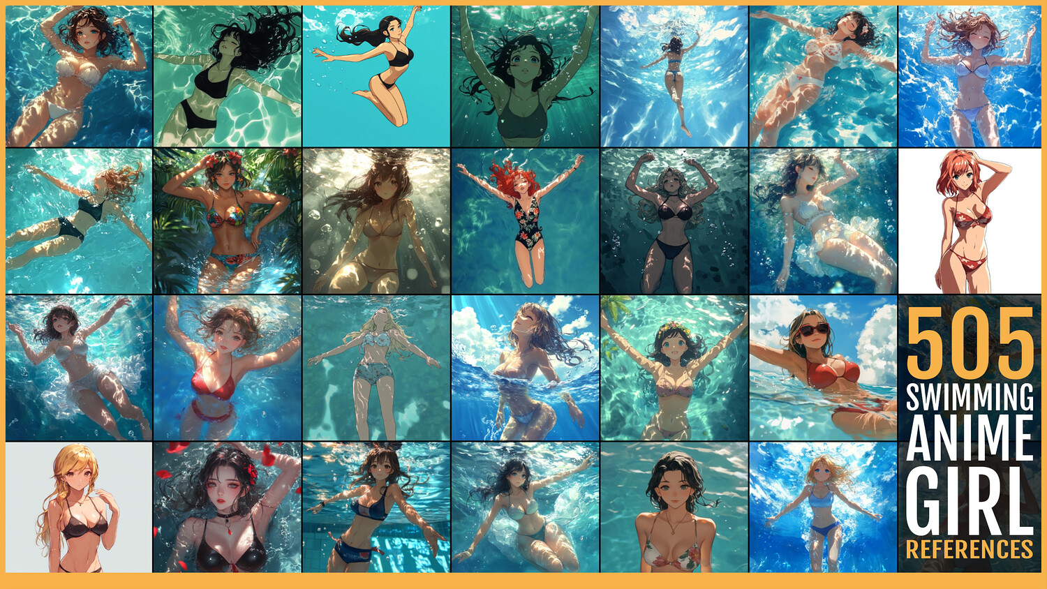 505 Swimming Anime Girl 🔘 Content : - high-quality images -jpeg -4K Resolution