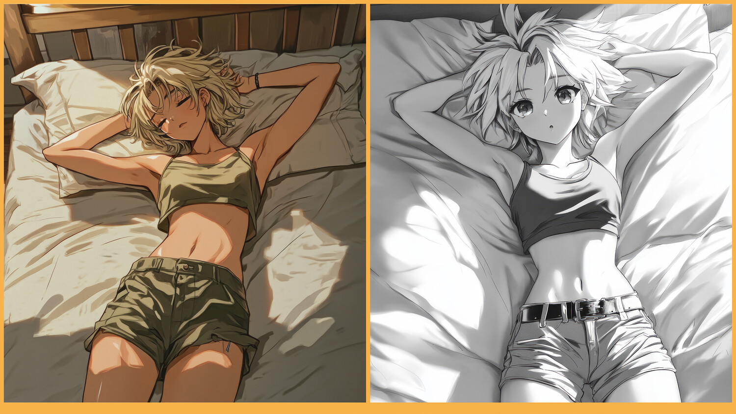 505 Casual Anime Girl Resting on Bed 🔘 Content : - high-quality images -jpeg -4K Resolution