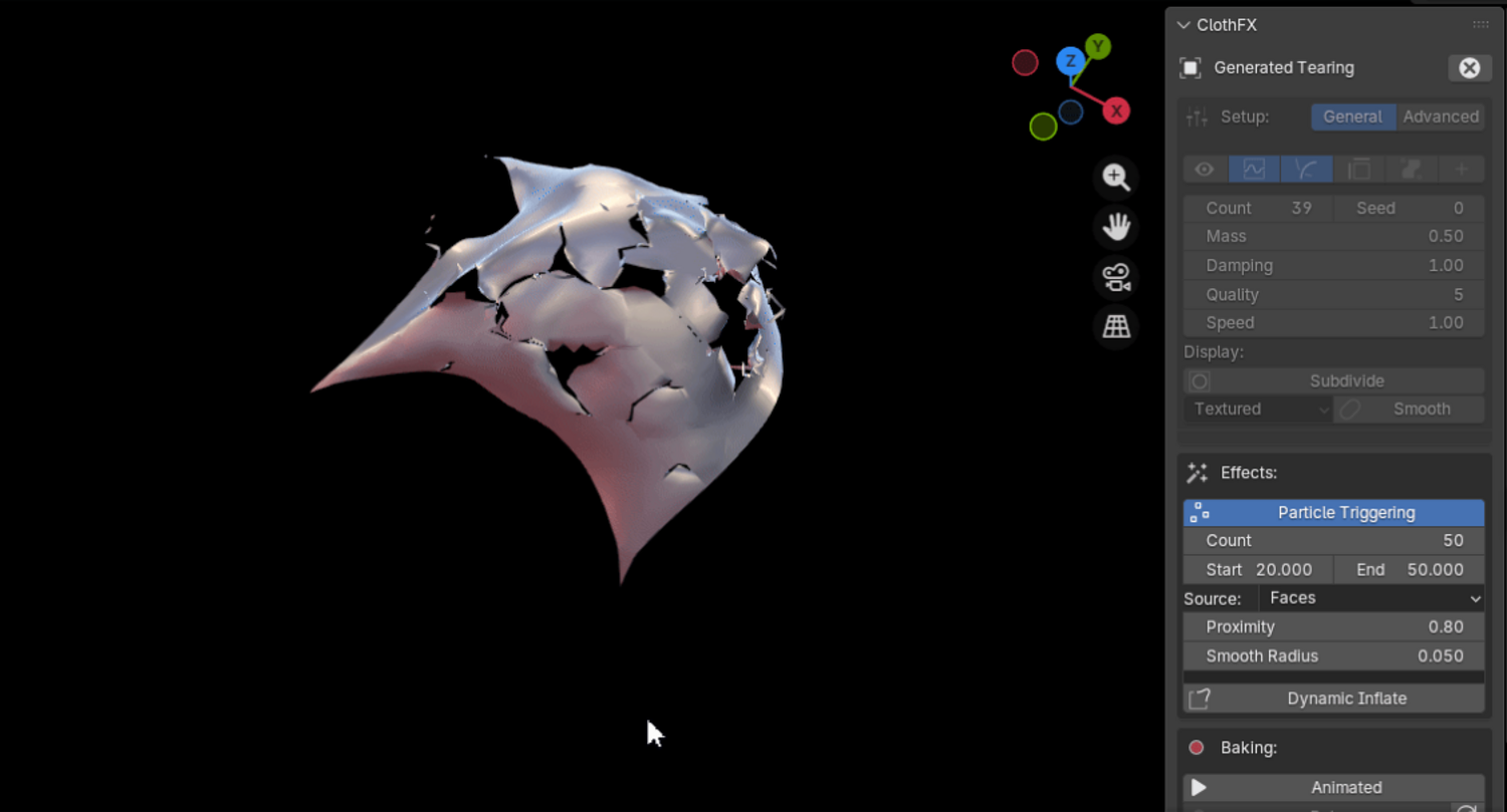 With ClothFX, you don't need to pre-bake any simulation. Tearing is done in realtime, & baked afterwards.