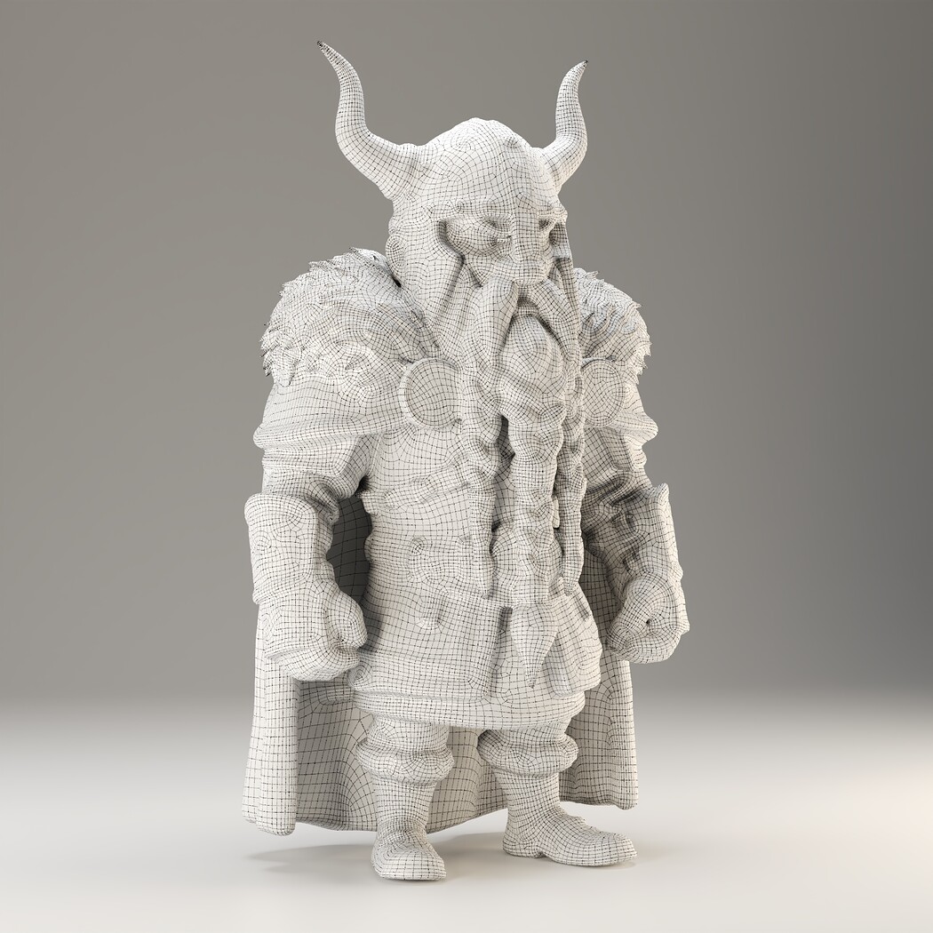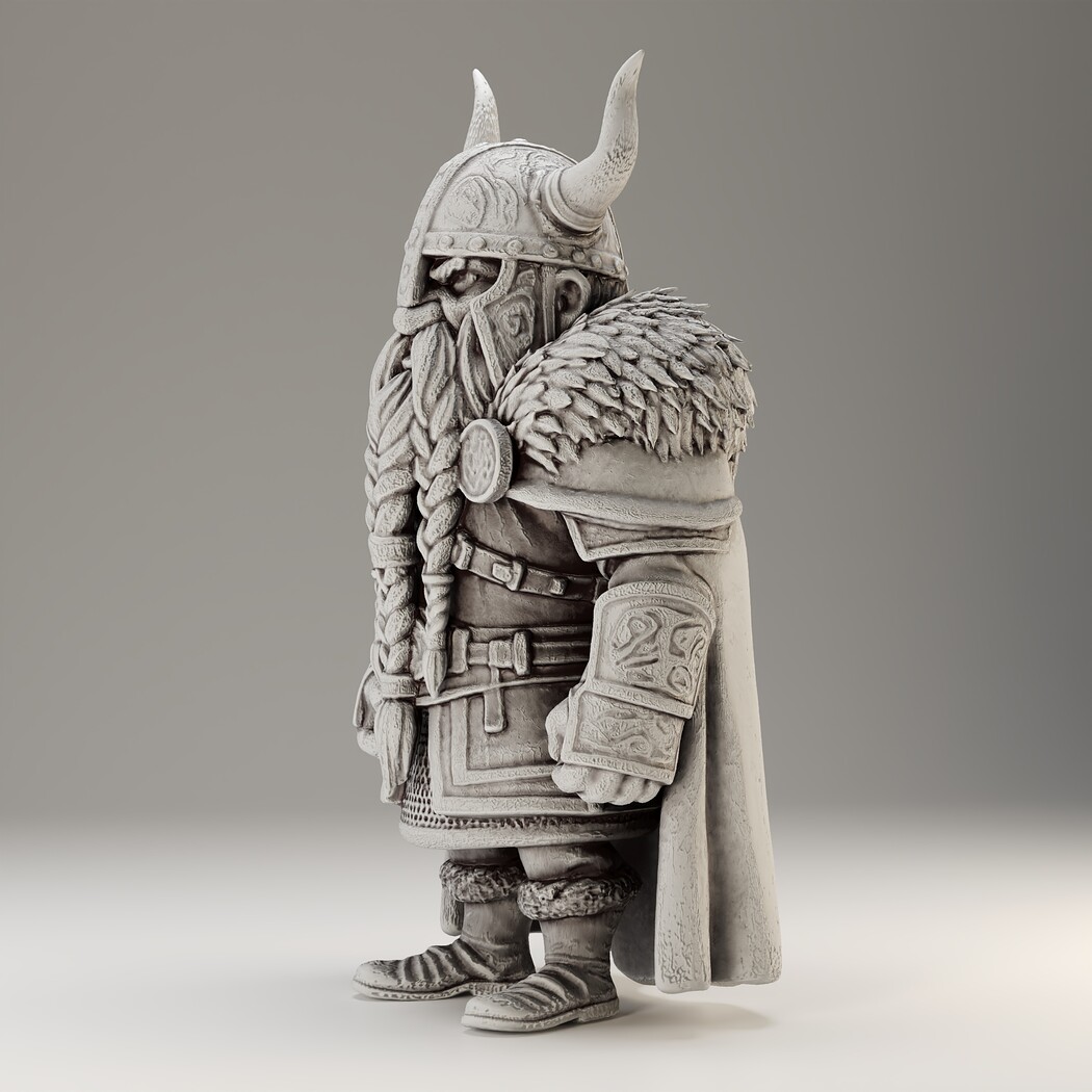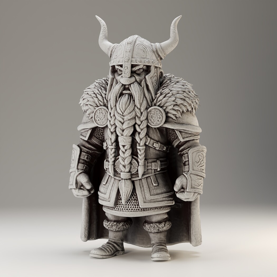 A powerful Viking Dwarf character for your fantasy worlds! Includes high-poly sculpt, game-ready low-poly, and STL for 3D print.