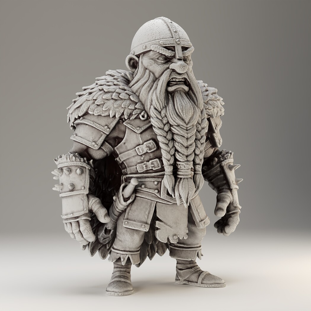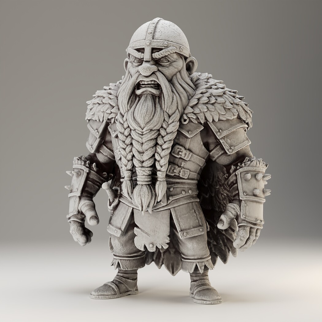 A powerful Viking Dwarf character for your fantasy worlds! Includes high-poly sculpt, game-ready low-poly, and STL for 3D print.