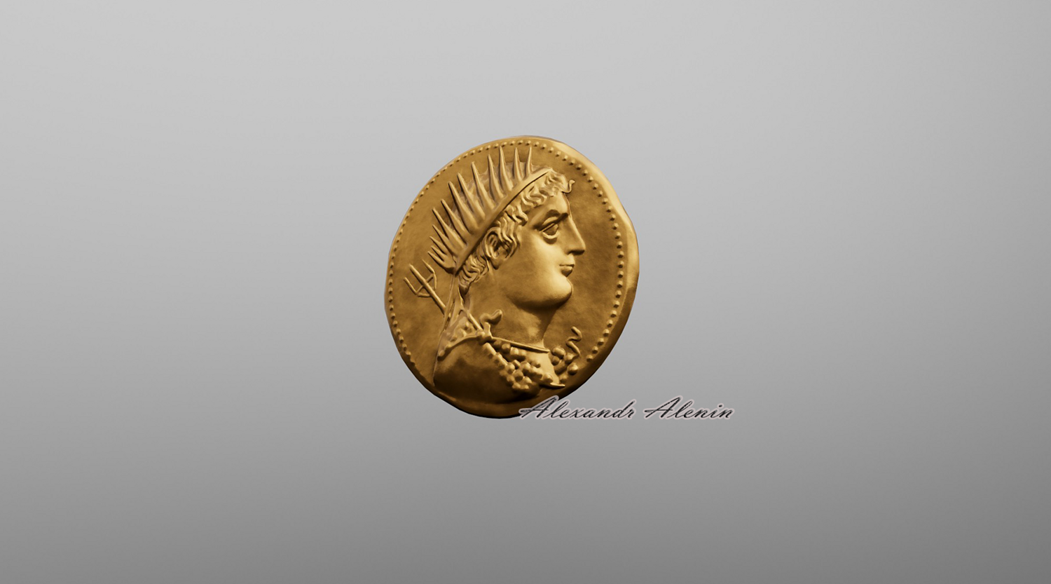 3D model of an antique coin with the image of Ewerget . In the archive you will find High and Low poly models and textures.
