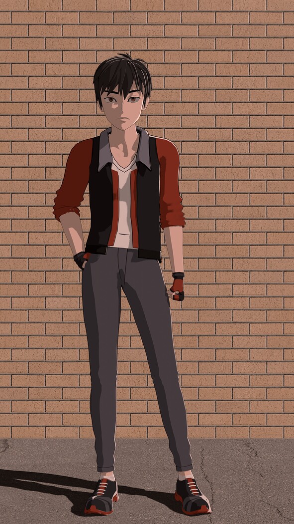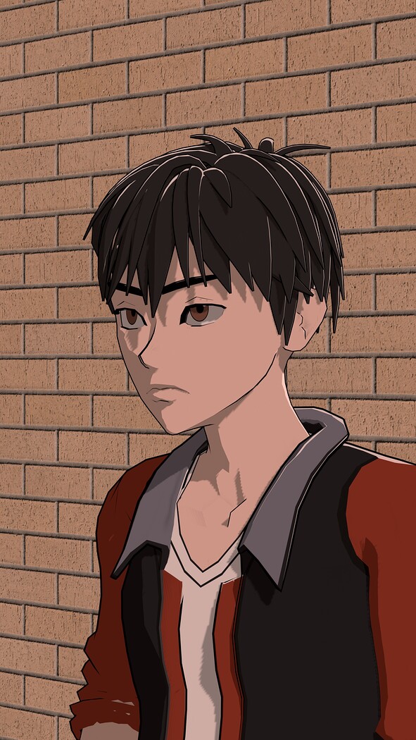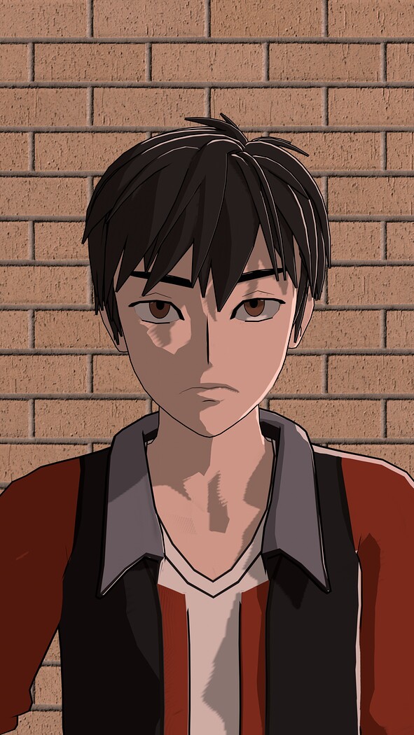a blend file of an Anime boy character for all use , fully rigged with facial expressions