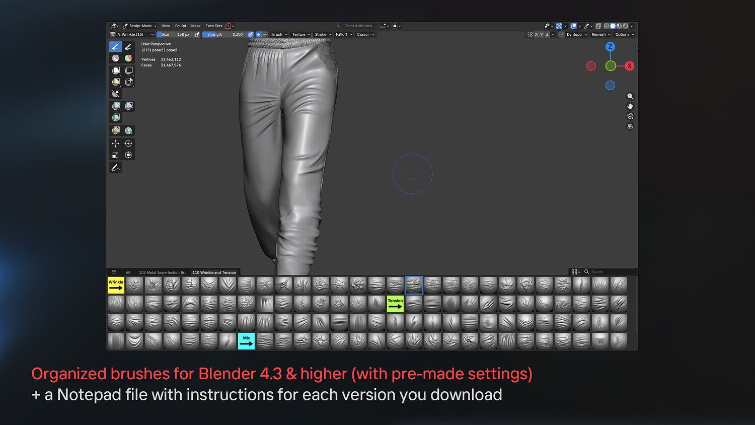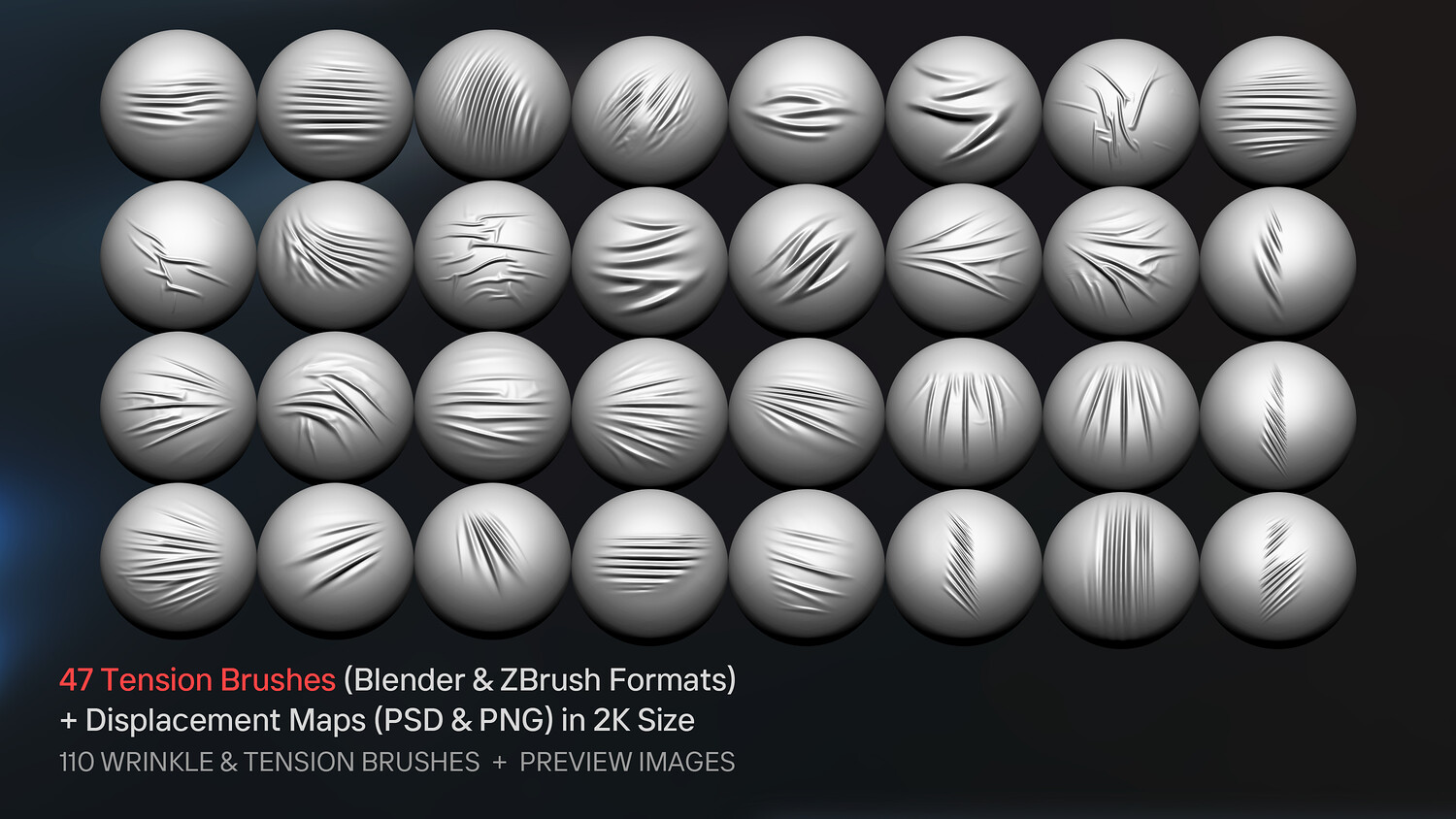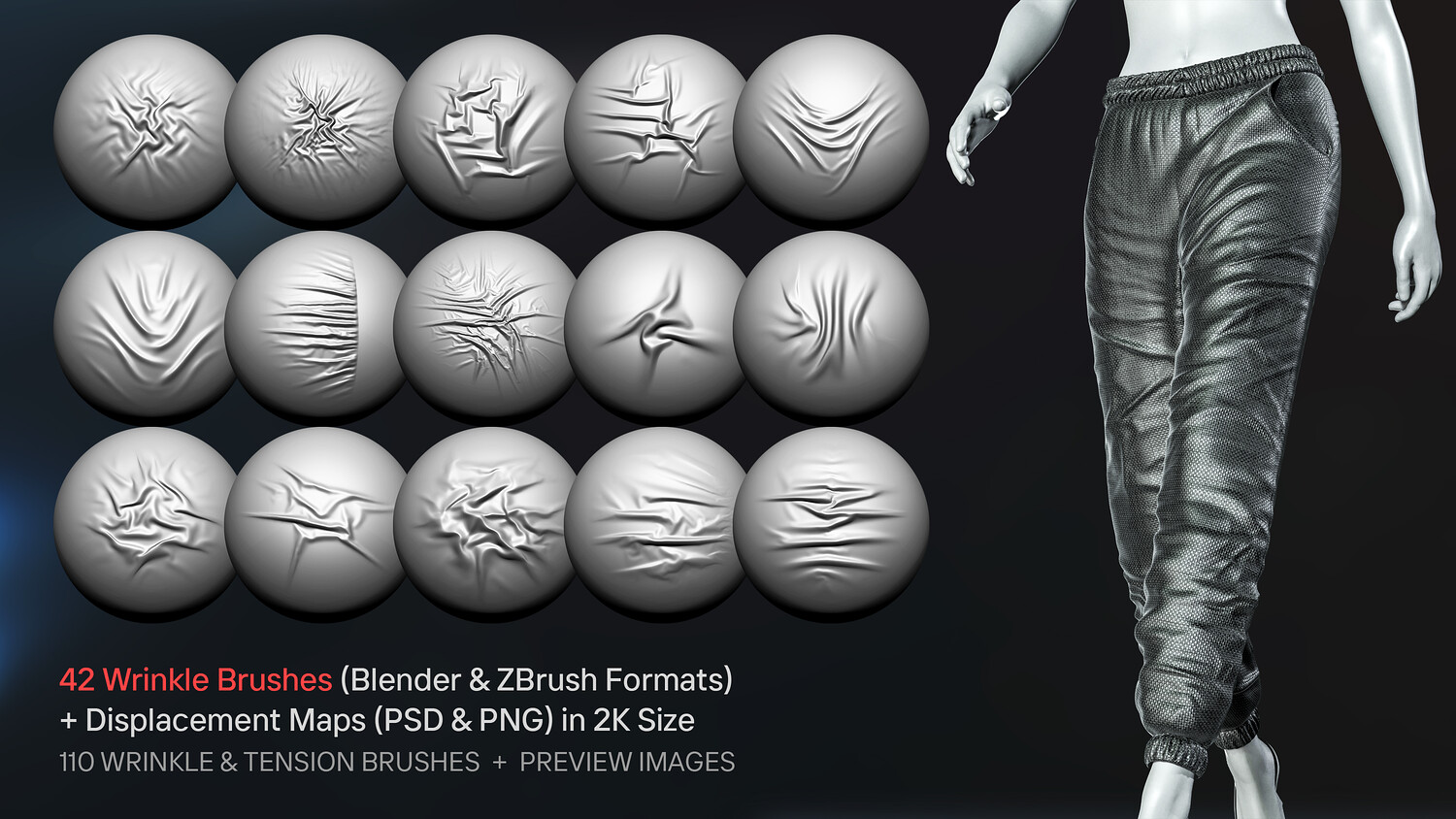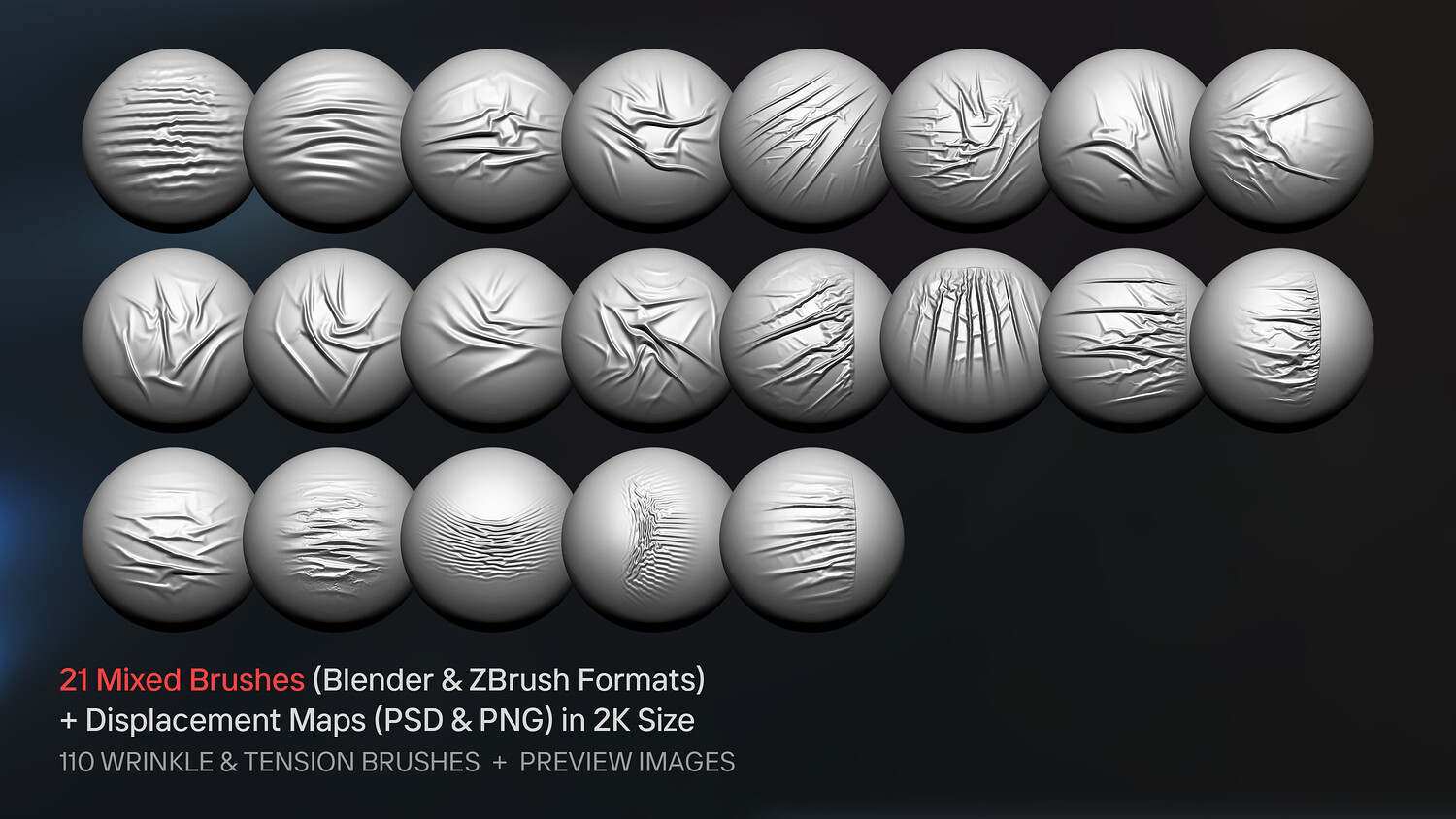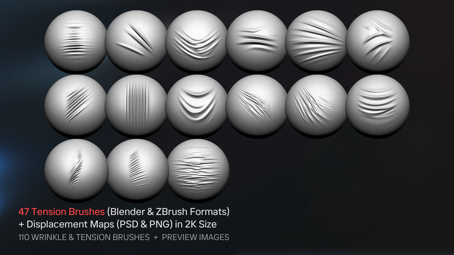 π¨ Introducing 110 Wrinkle and Tension Brushes for Blender & ZBrush + Displacement Maps! β¨ Bring your clothes and fabric assets to life with next-level realistic brushes including Wrinkles, Tensions, and Mixed, all in one pack!
