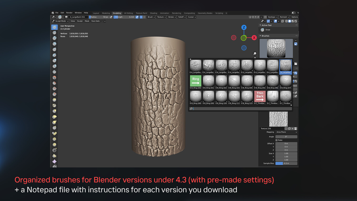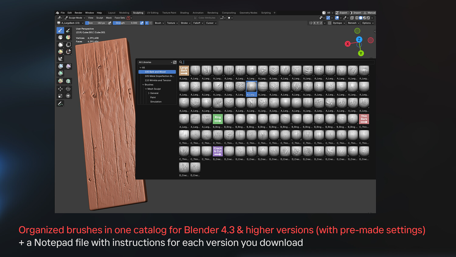 100 Bark & Wood Brushes (Tree Bark, Ring, Crack & Cut For Blender & Zbrush)