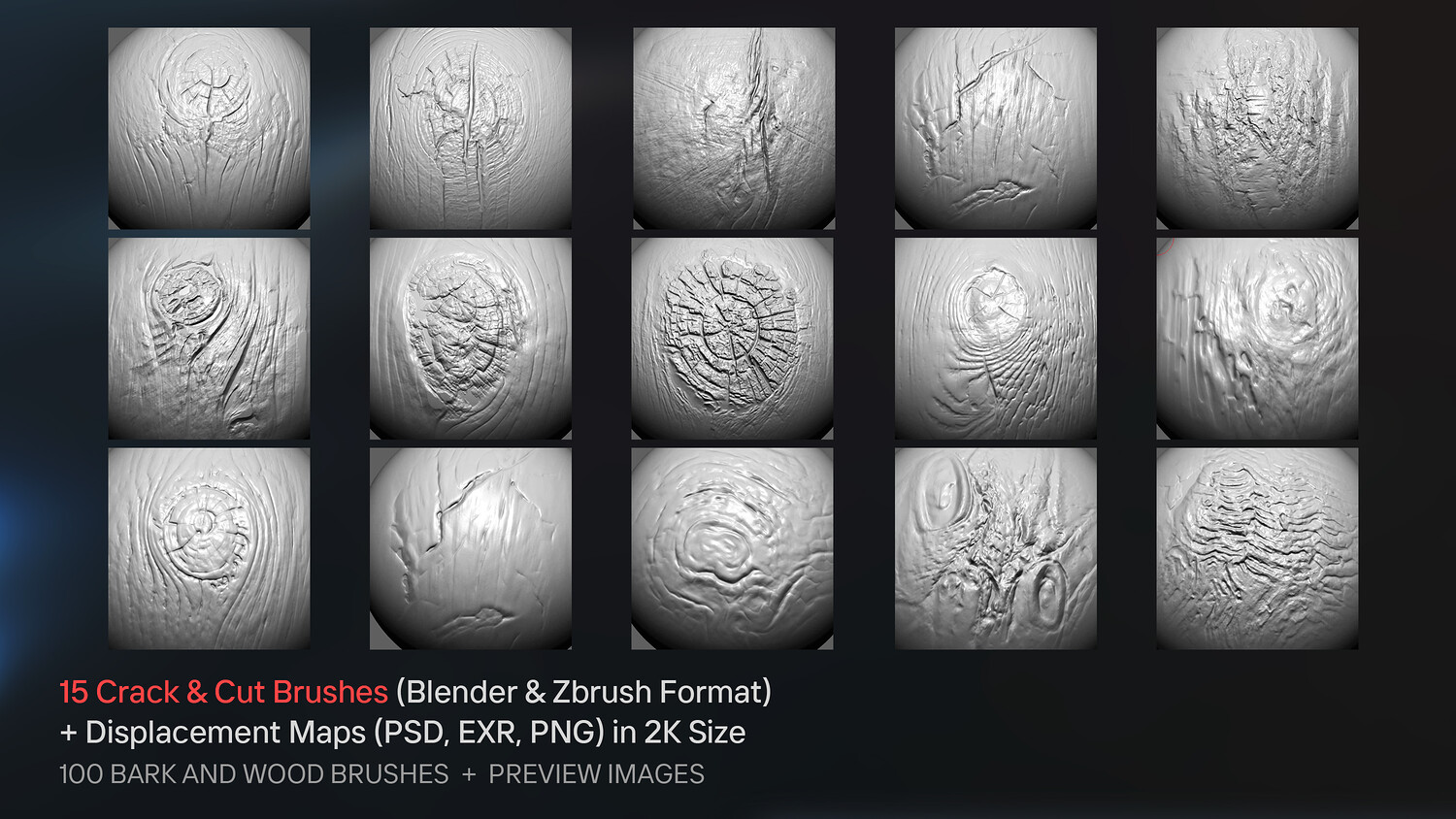 🎨 Introducing 100 Bark and Wood Brushes for Blender & ZBrush + Displacement Maps! ✨ Bring your wooden assets to life with next-level realistic brushes including Tree Bark, Tree Rings, and Wood Crack and Cuts, all in one pack!