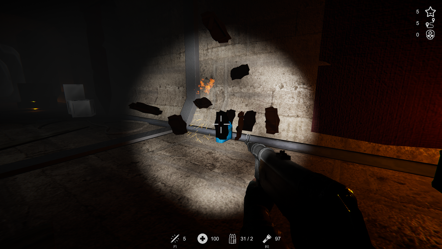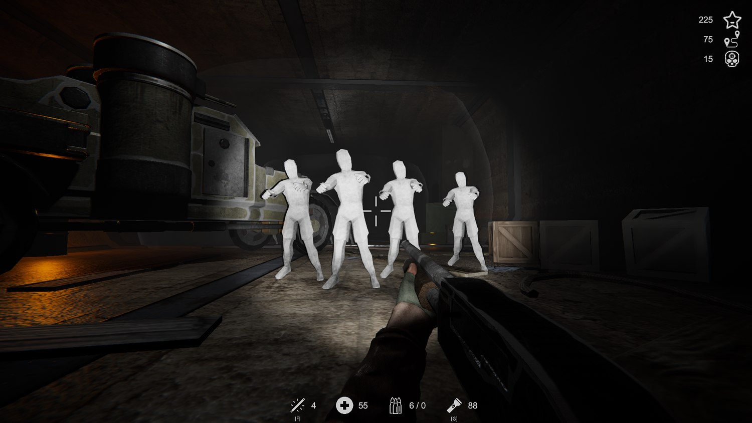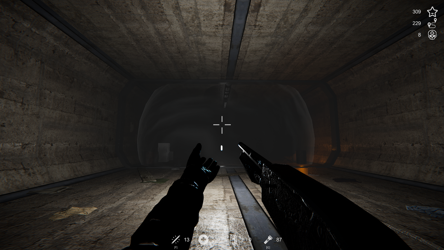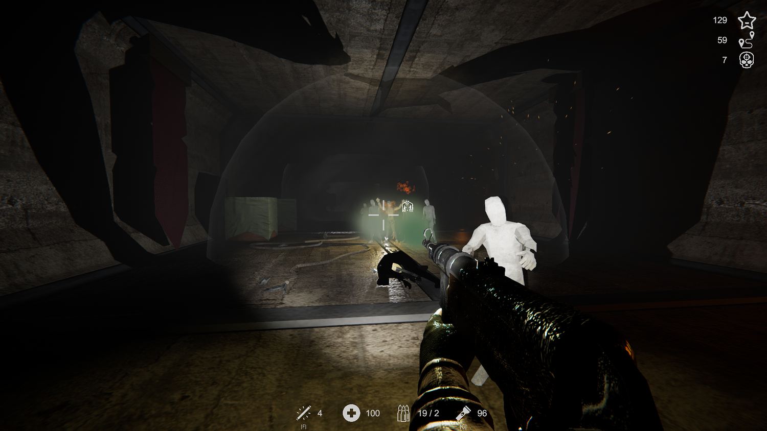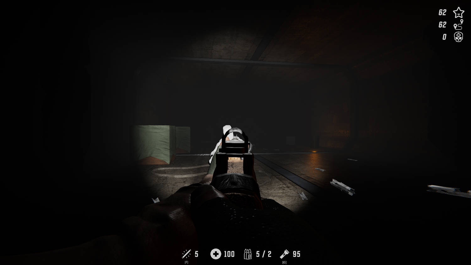 Flashlight: A crucial survival tool that reveals enemies lurking in the darkness. Glow Sticks: Throwable light sources to illuminate areas and make zombies vulnerable from a distance. Ceiling Lights: Permanent light sources that help clear enemies but can also be destroyed, increasing the challenge. Complete FPS Combat System