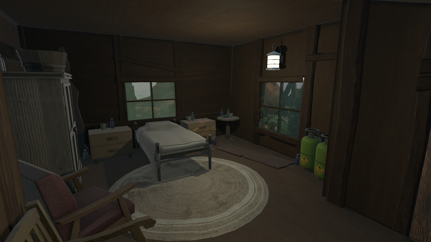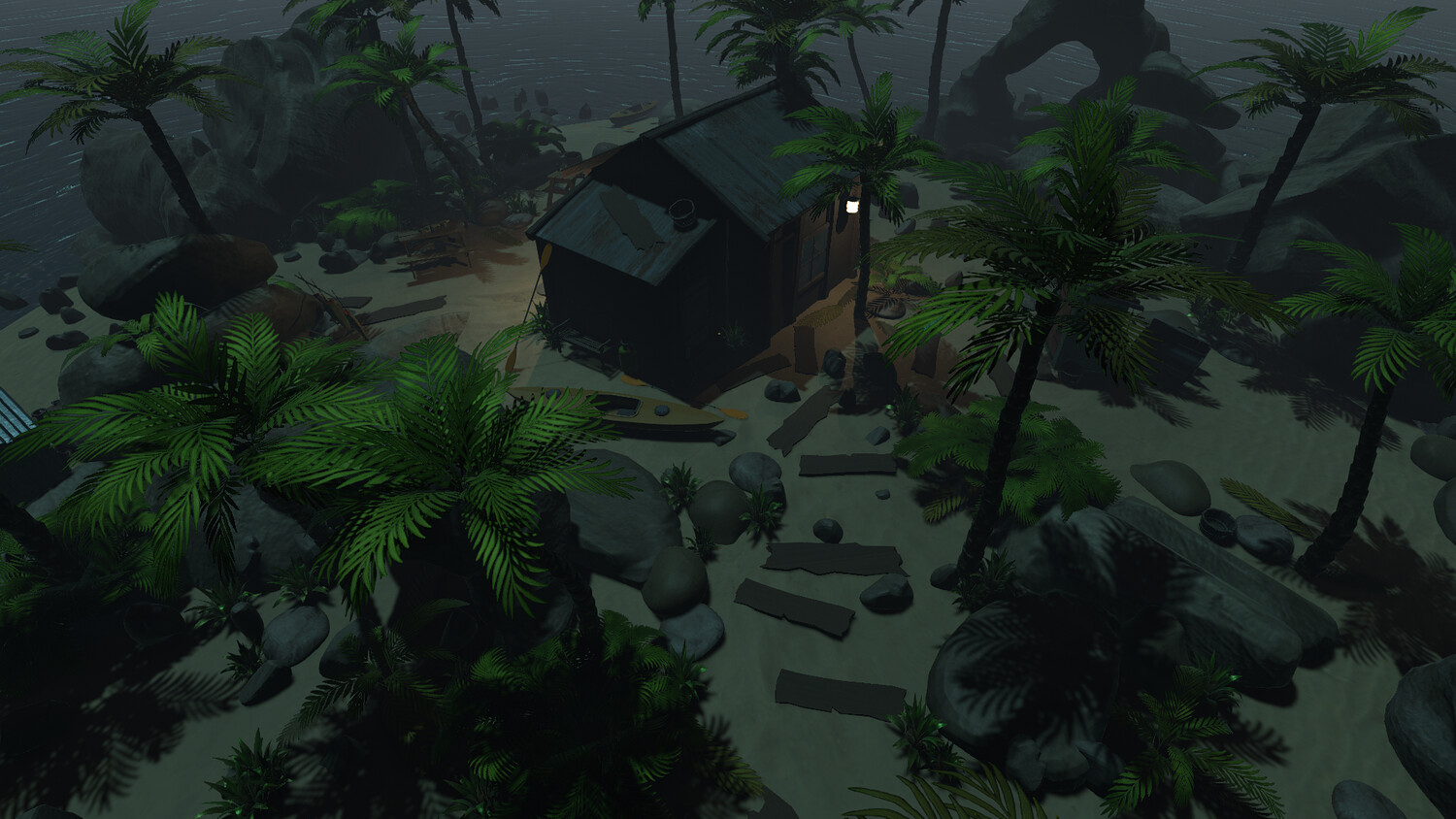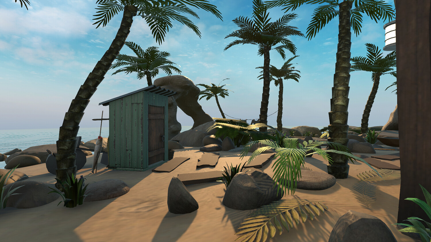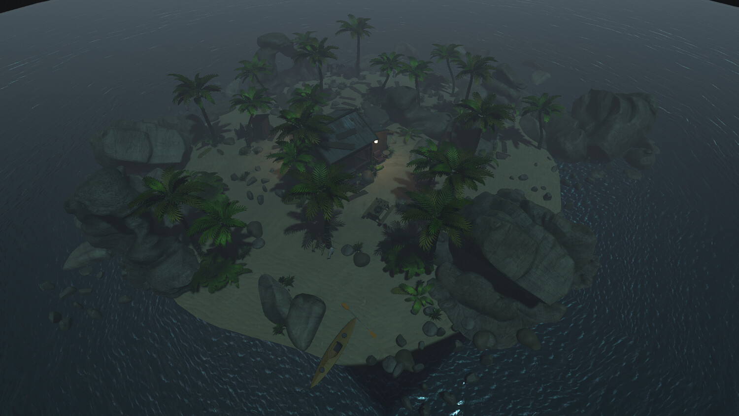 Inside this small cabin beachfront island scene, you'll find a variety of assets, from the wooden cabin, outhouse, rowboats, picnic tables, grills, benches, armchairs, planks, fishing gear, gas canisters, clothesline and plenty of foliage such as palm trees, plants, ferns, grasses, rocks, boulders and cliff formations and much more!
