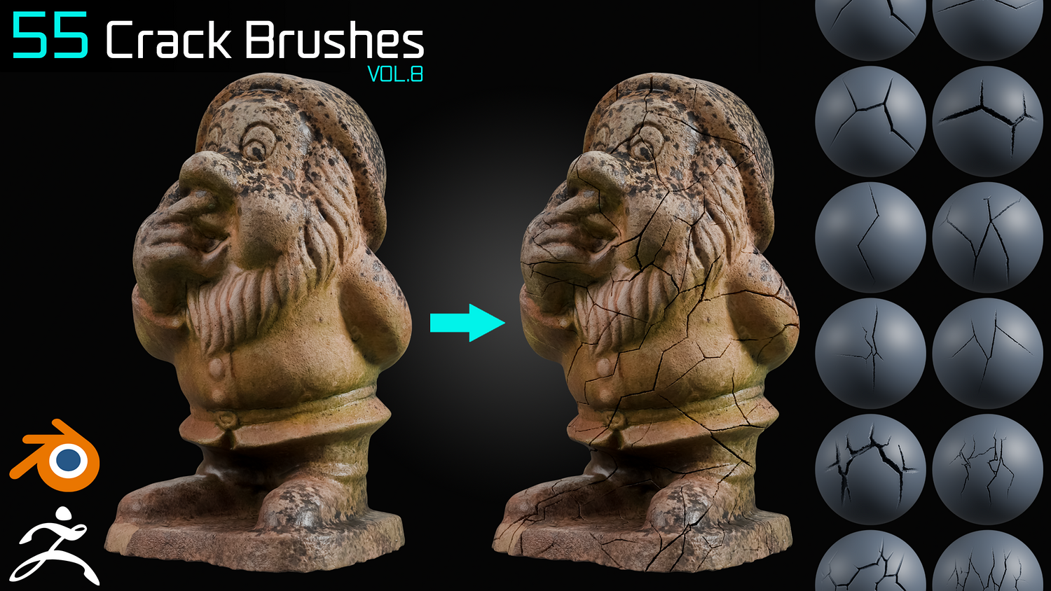 55 Crack Brushes - Blender & ZBrush - Vol. 8