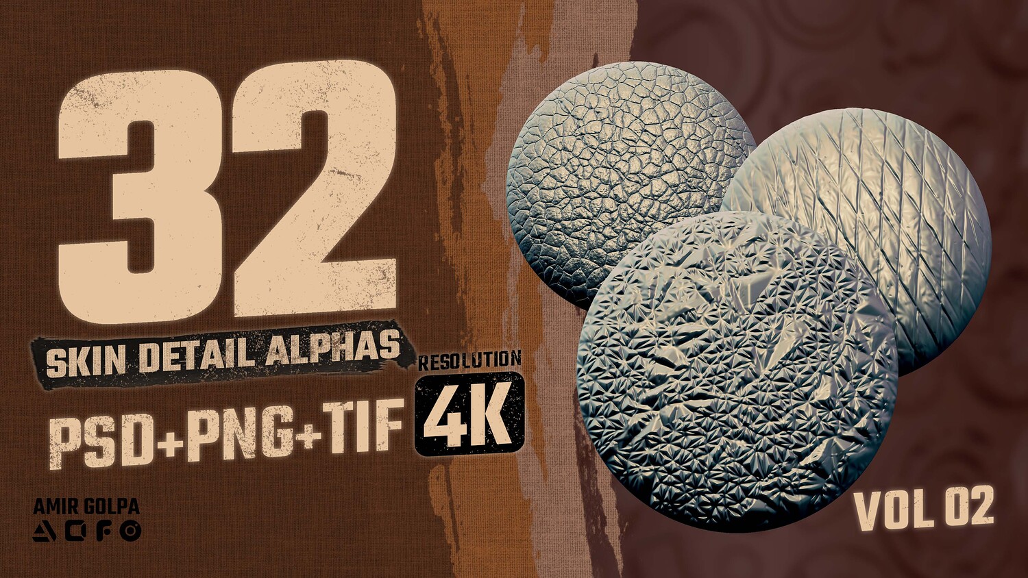 Skin Detail Alpha Pack Vol.02 β 32 Tileable 4K Alphas (PSD, PNG, TIF)