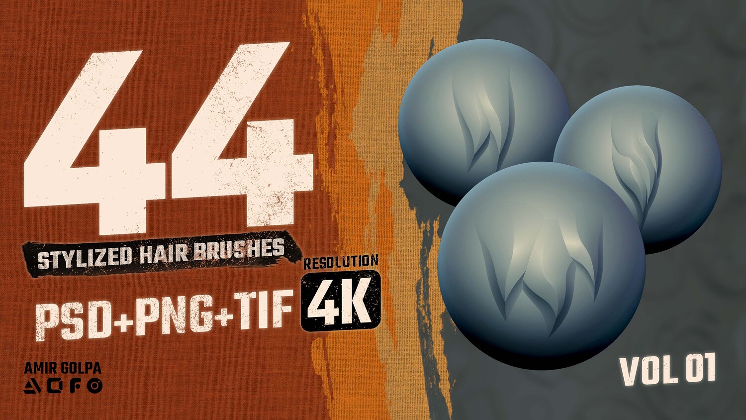 A professional set of 44 stylized hair brushes, created in Substance Designer and delivered in PSD, PNG, and TIF formats with 4K resolution. This collection is built to provide clean, versatile, and production-ready tools for artists who need efficient solutions in their workflow.