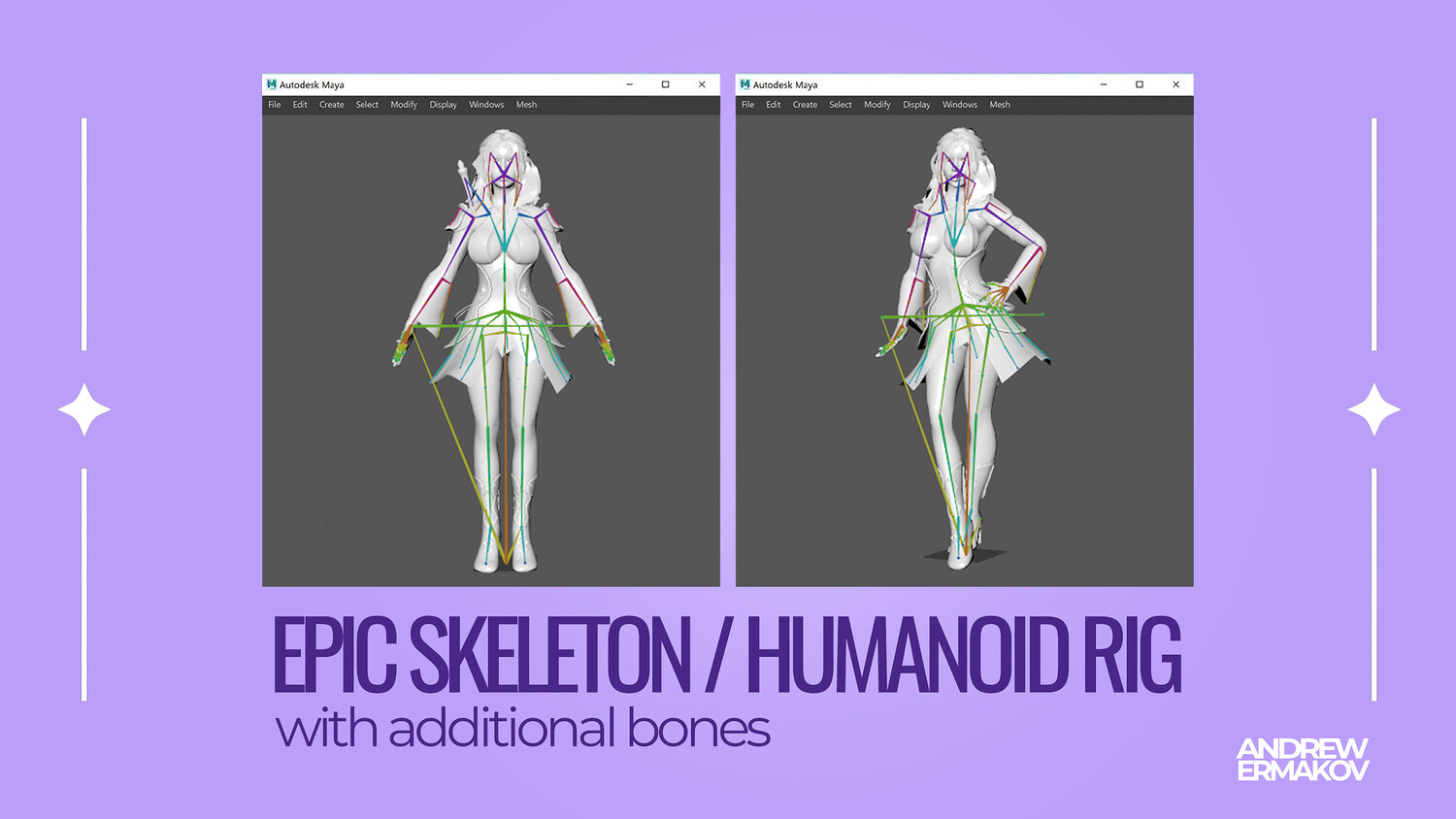 This Character rig is based on UE4 Mannequin skeleton. The main bones hierarchy has remained untouched for easy retargeting. With additional bones you can apply physics to different parts.