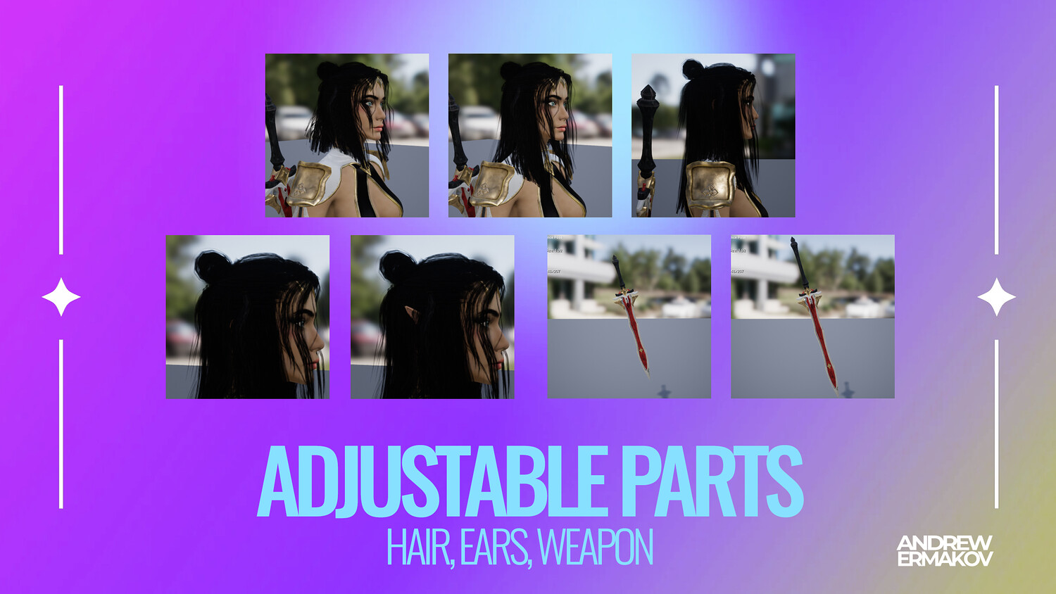 Body morphs allow you to regulate waist, breast and butt size, switch between human and elf ears, change the hair length, change the size of the weapon.