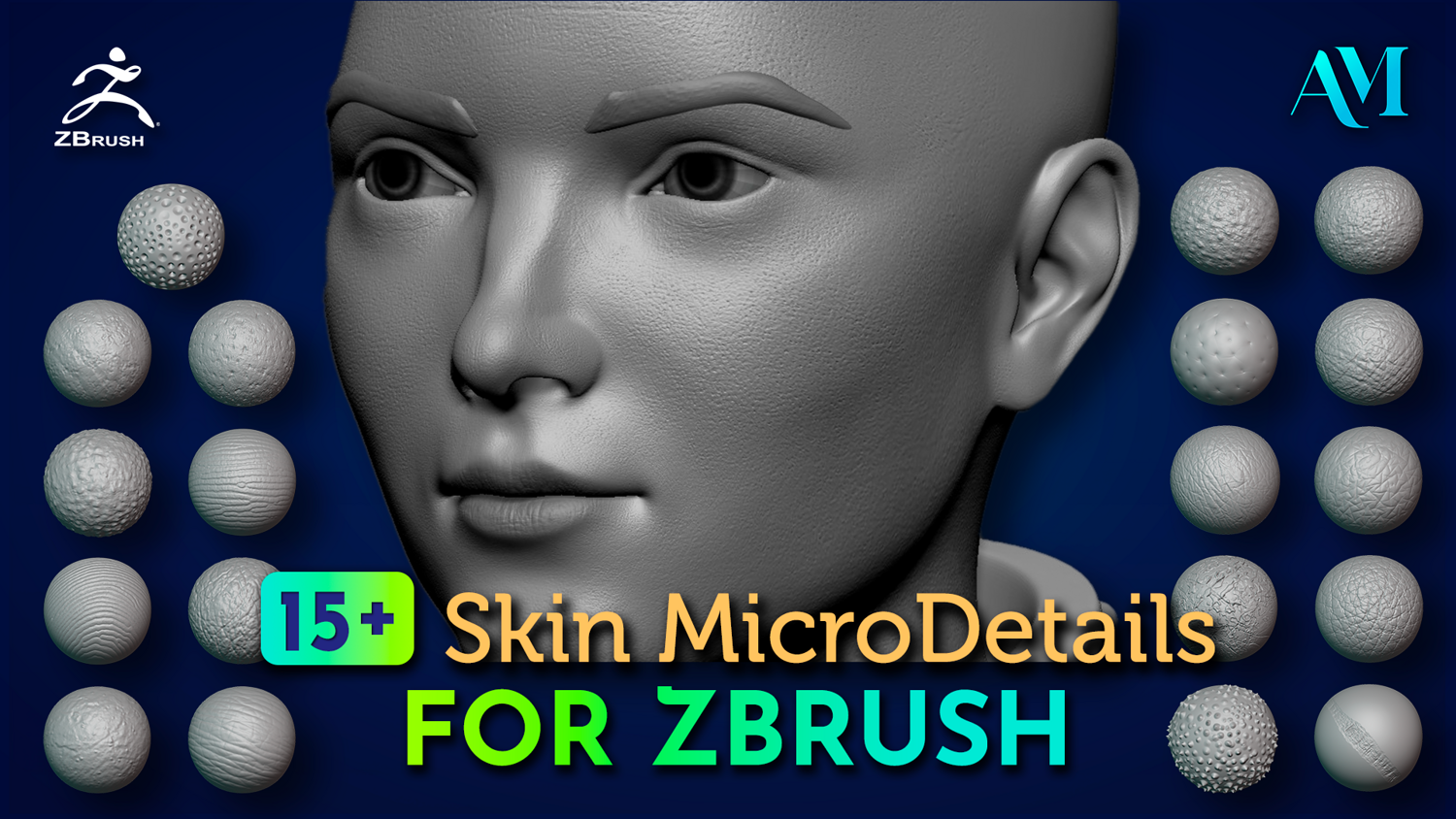 Add high pore details to your 3d realistic characters in Zbrush with this exclusive brush pack that contains: