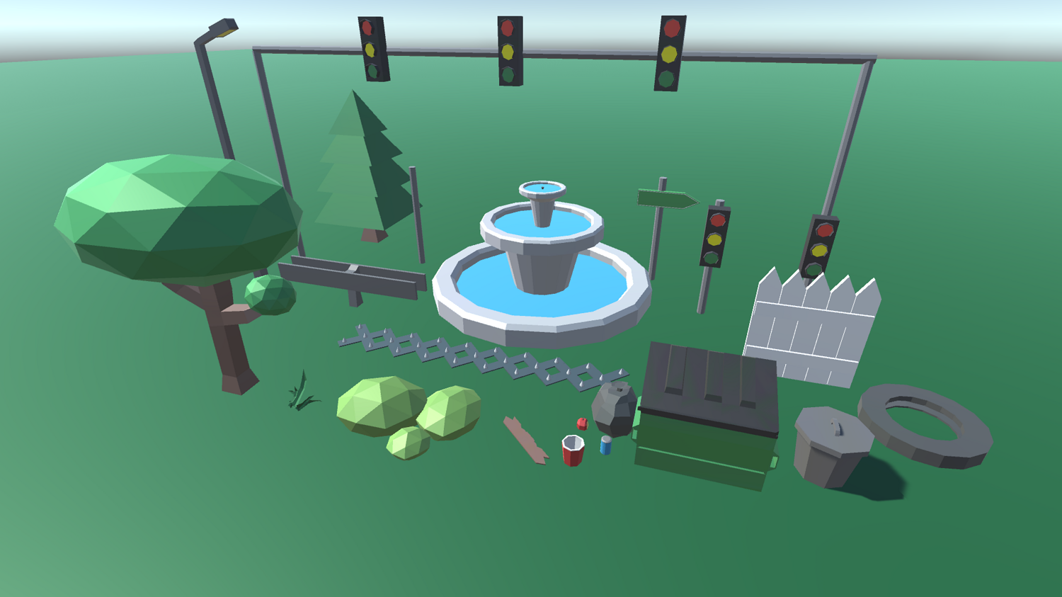 In addition to these essentials, the pack includes miscellaneous elements that add unique details to your city. The spike trap can be used in security or roadblock scenarios, while the fence provides boundaries or private areas. The fountain serves as a decorative centerpiece, perfect for parks or plazas, adding a touch of elegance to your urban design.
