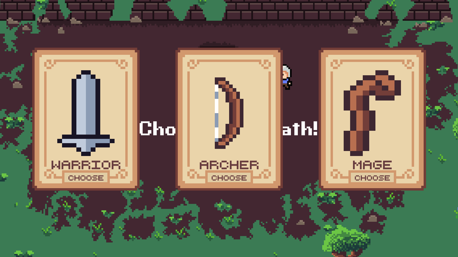 Each class is equipped with a unique weapon: the Knight wields a powerful sword and shield, the Archer uses a precision bow, the Mage casts spells with a magical staff, and the Necromancer commands the undead with a formidable scythe. (Necromancer isn't a playable class, it is a boss class)