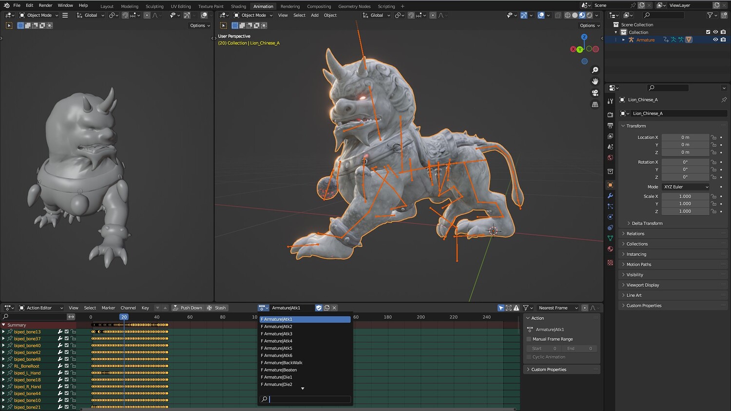 • Lion Chinese Model Motions A1,2,3,4 Use the same video describing Typical Motions. They only differ in Color and Material.