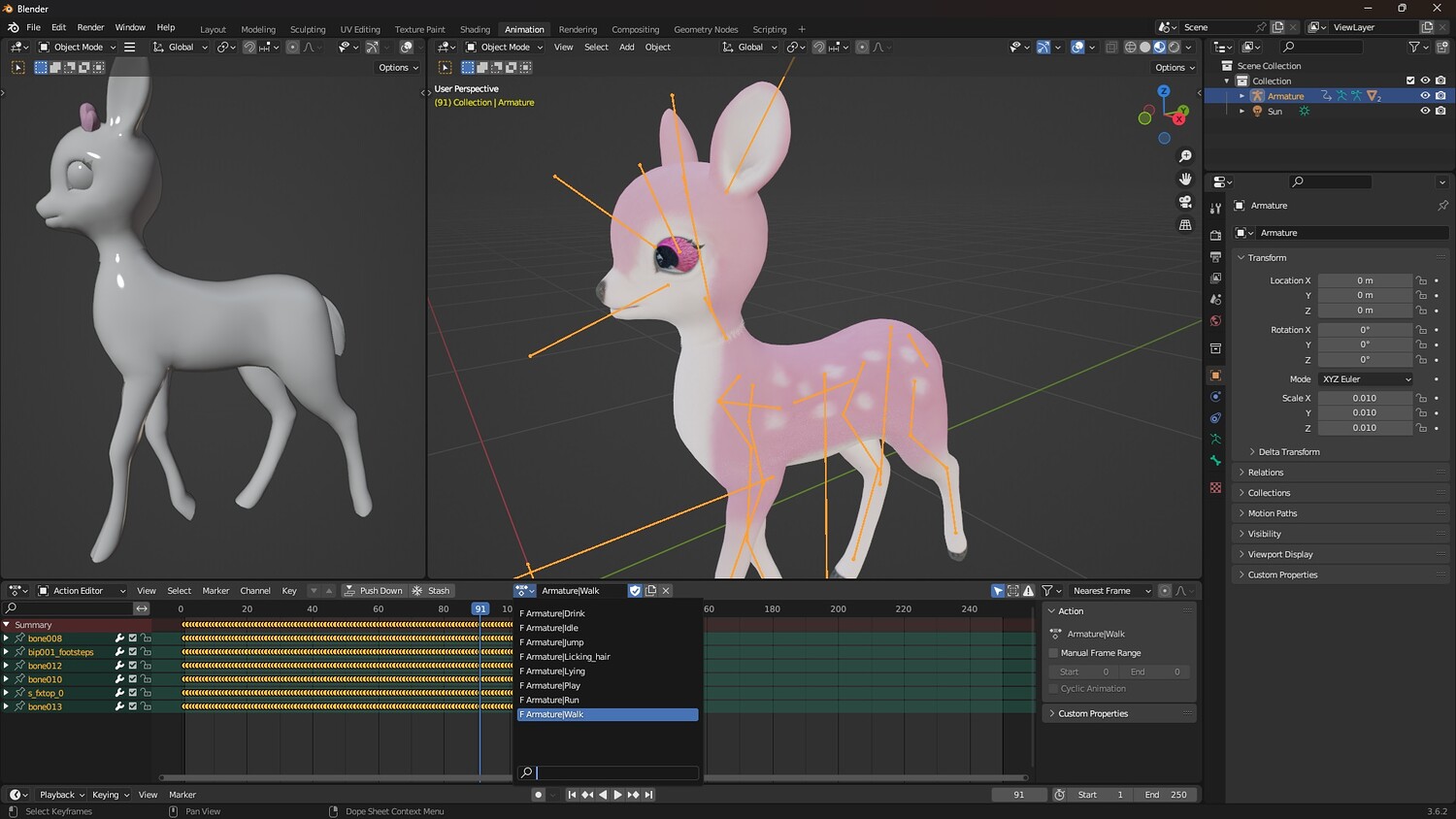 • Baby Deer Model Motions A1,2, Use the same video describing Typical Motions. They only differ in Color and Material.