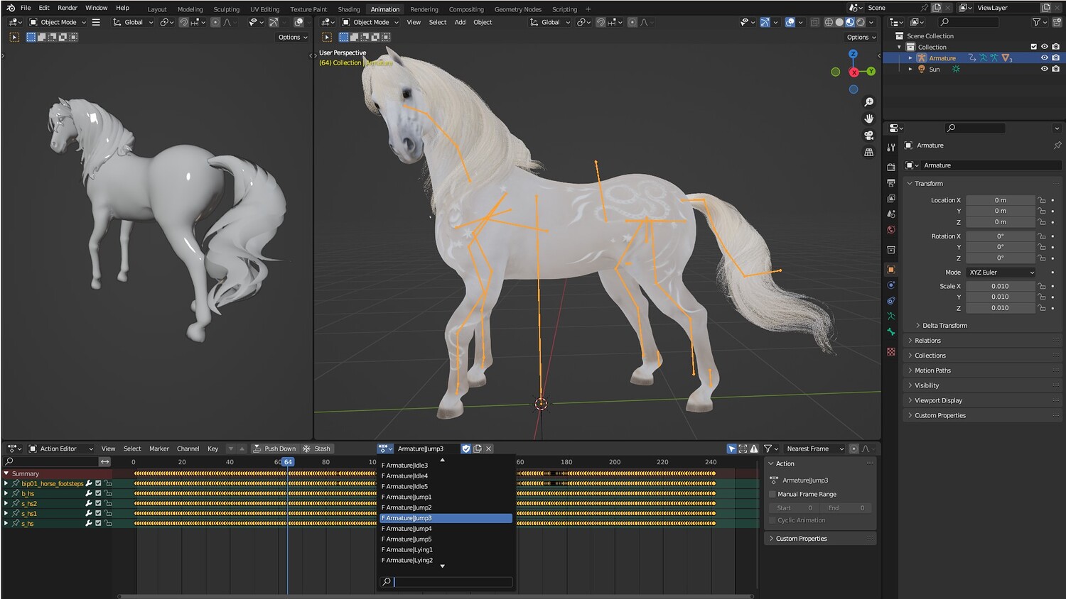 • Horse Model Motions D1,2,3,4,5 Use the same video describing Typical Motions. They only differ in Color and Material.