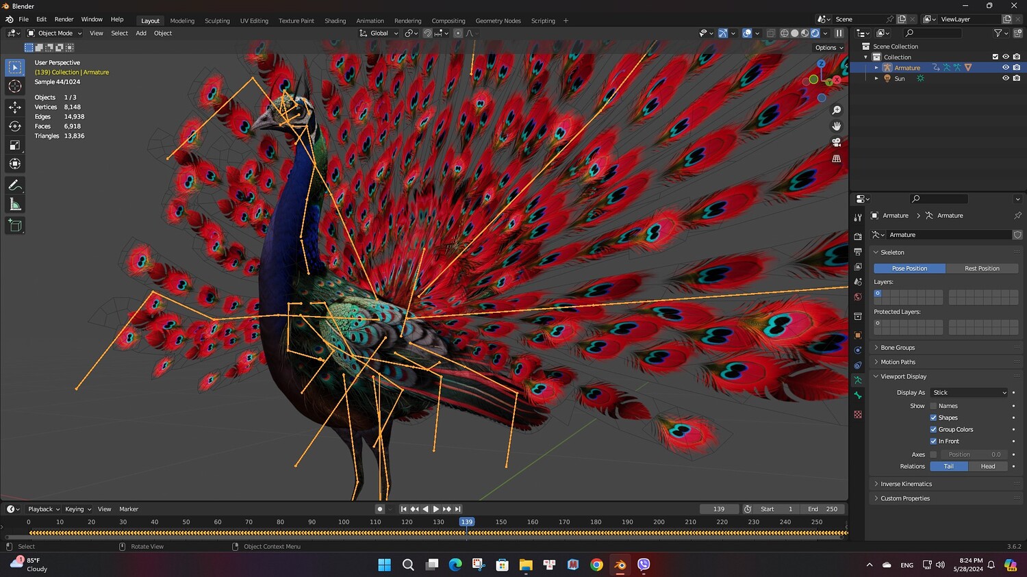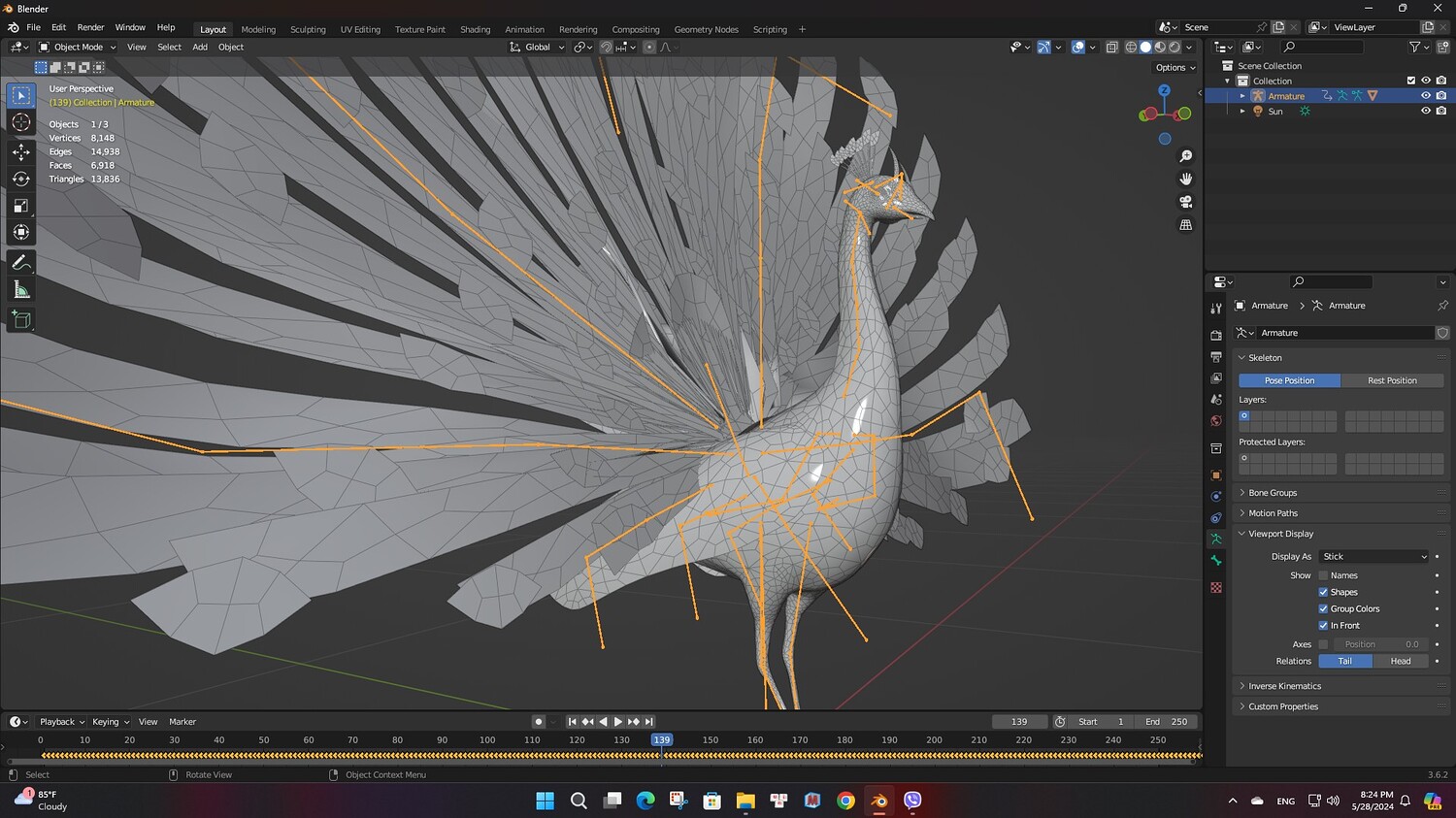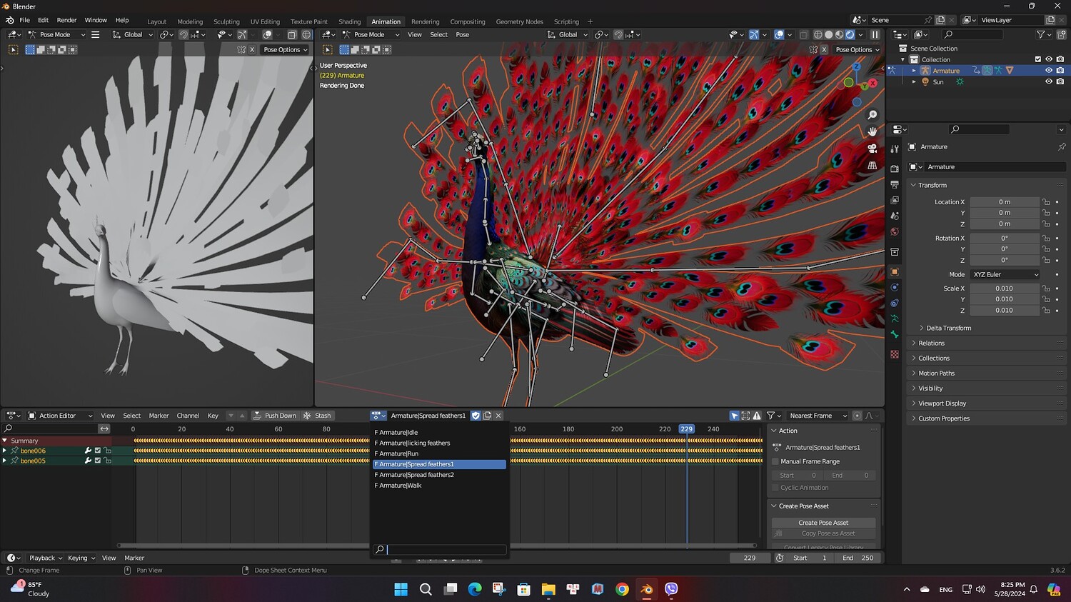 6. Motions: 06 – Idle, licking feathers, Run, Spread feathers, Spread feathers2, Walk
