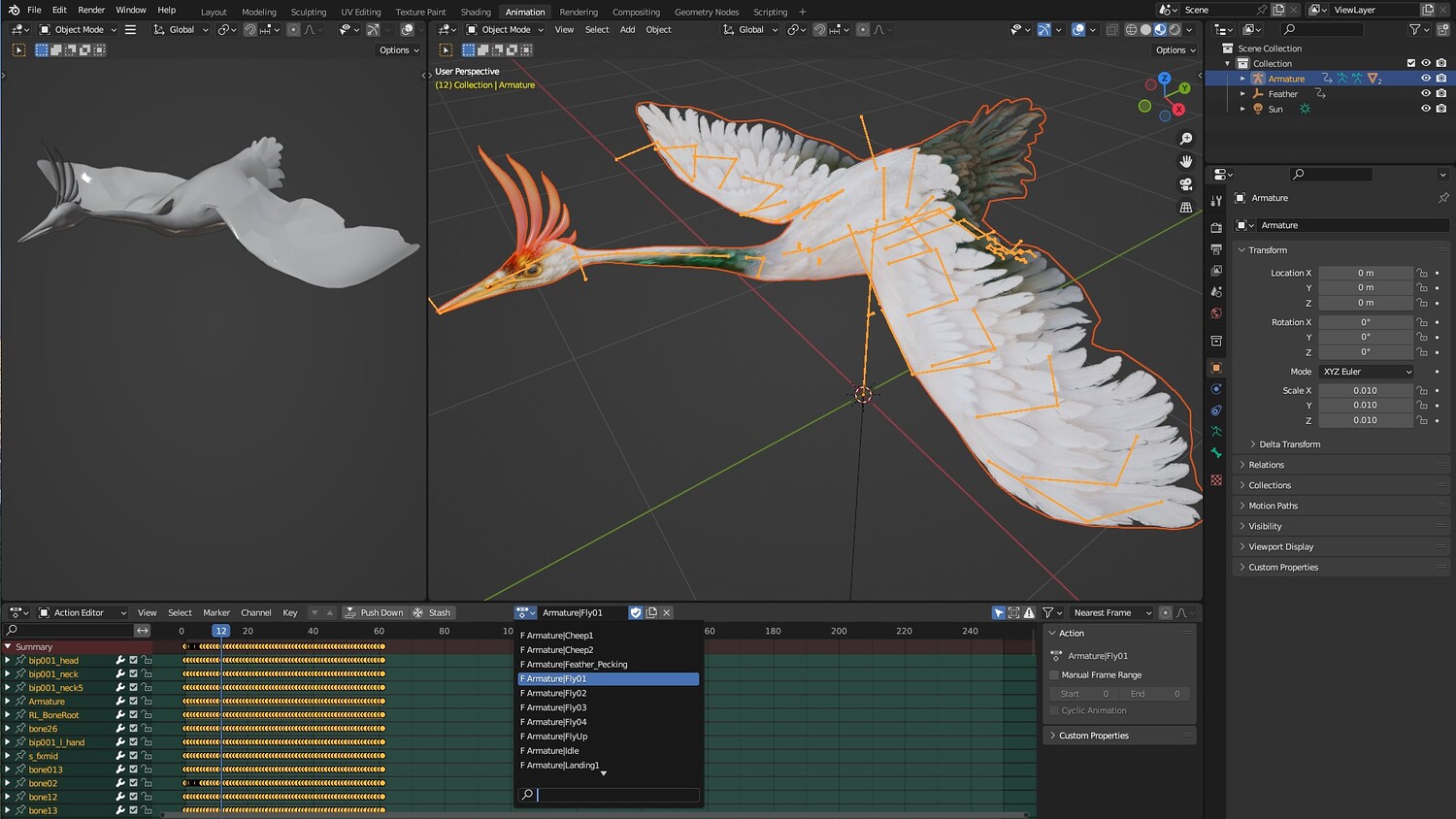Feather_Pecking,Fly01,Fly02,Fly03,Fly04,Flyup,Idle,Landing1,Landing2,Play,Run1,Run2,RunFly,Sleep,Stand,Walk, WalkARound
