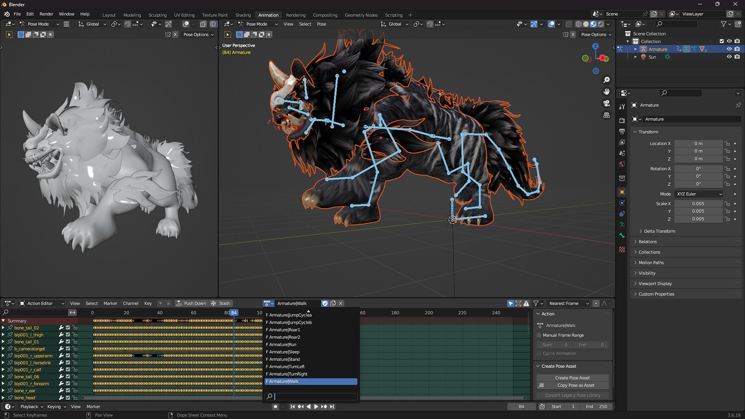 6. Motions: 21-Atk1,Atk2,Atk3,Atk4,Atk5,Atk6,Atk7,Atk8,Die,Idle1,Idle2, JumpCycle a, JumpCycle b,Roar1,Roar2,Run,Sleep,Stand, TurnLeft, TurnRight, Walk