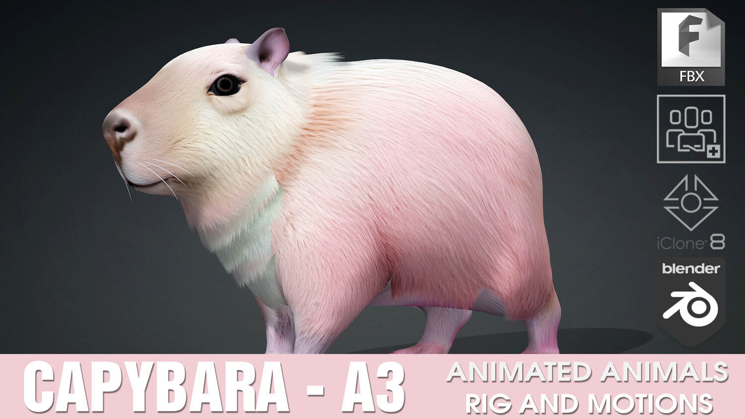 • Capybara Model Motions A1,2,3,4 Use the same video describing Typical Motions. They only differ in Color and Material.