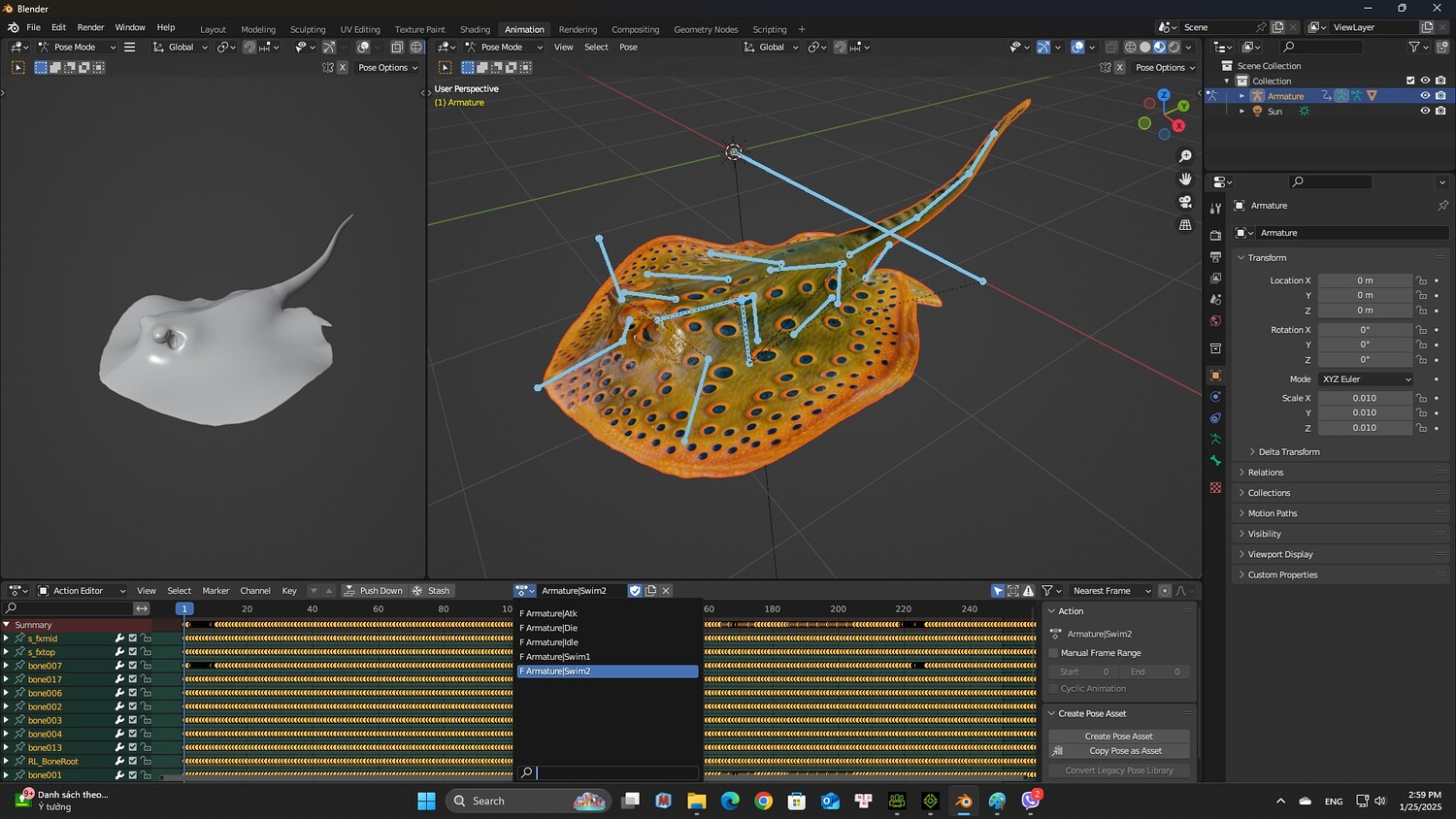 • Ray Fish Model Motions A1,2,3, Use the same video describing Typical Motions. They only differ in Color and Material.