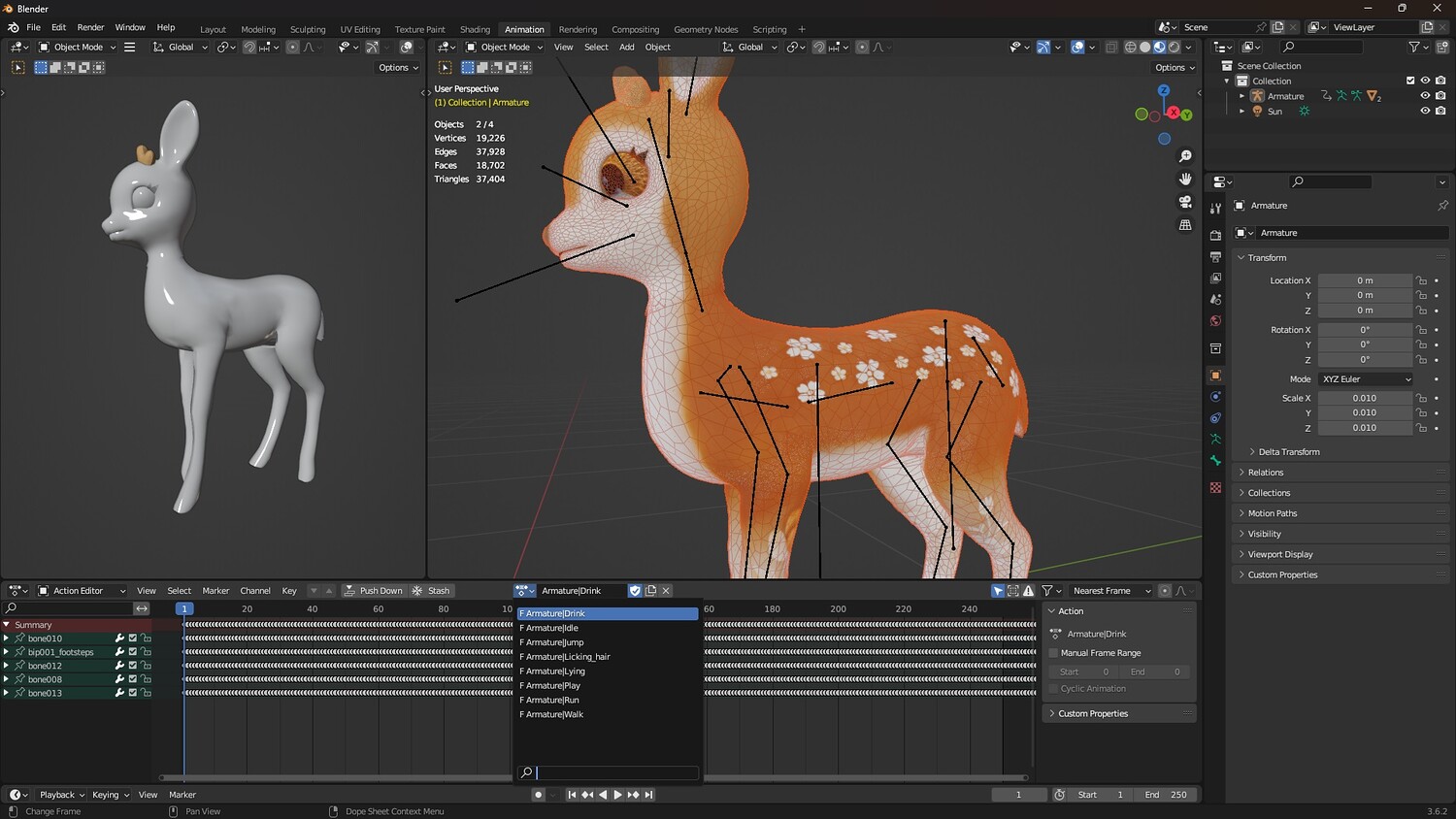 • Baby Deer Model Motions A1,2, Use the same video describing Typical Motions. They only differ in Color and Material.
