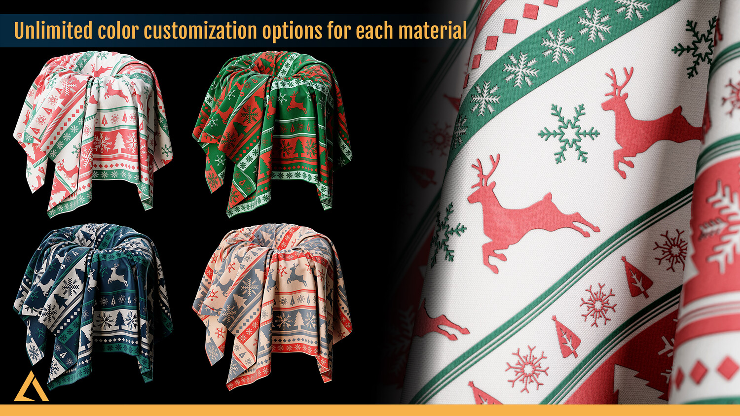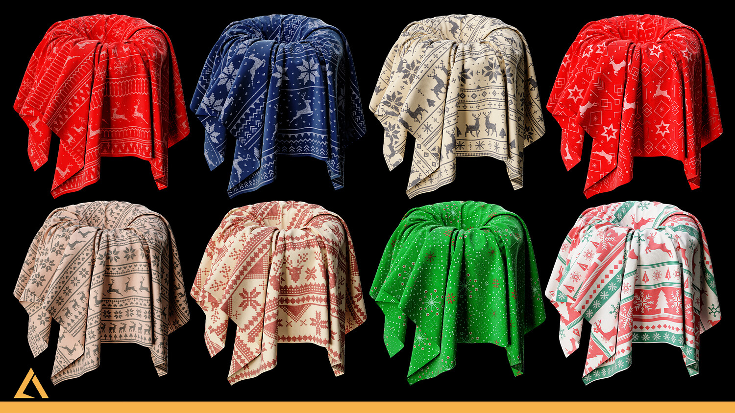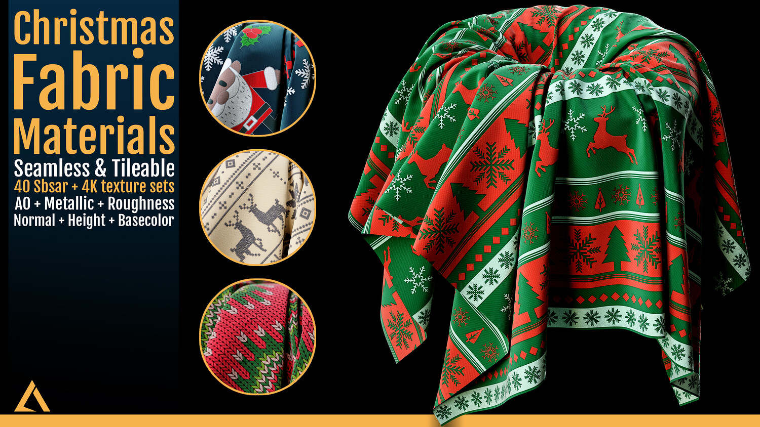 This collection of 40 premium Christmas fabric Pattern Materials is designed to elevate the realism of fabric materials in your projects. Each set includes SBSAR and Textures ( Base color, AO, Normal, Height, Roughness, Metallic), ensuring you have all the necessary tools to achieve convincing fabric textures. With this seamless texture pack, you can confidently integrate these materials into your work, knowing they will maintain the quality and consistency required for professional results.