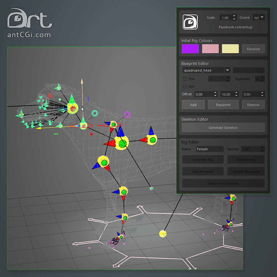 In this free trial you have access to the biped and quadruped modules, meaning you can generate basic rigs which feature squash and stretch, reverse feet and other key tools.