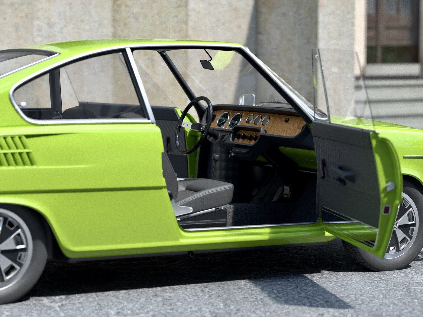 Polygon saving but accurate 3d model created according to real reference. Native format is Cinema 4d R21, model can use Hypernurbs subdivision. Other formats are exported in one resolution. Exported formats 3ds, max, fbx and obj are prepared well to work correctly with every standard modeling software such as Maya, Lightwave etc... Using FBX file for import is strongly recommended, because it preserves basic material properties, objects hierarchy, uvw coordinates and quad geometry. 3ds format preserves basic material properties, hierarchy and uvw coordinates, but all geometry is triangular. Max format includes hierarchy, quad geometry and standard materials. OBJ format preserves only quad geometry and uvw coordinates. Each format of model (except for OBJ) has hierarchy of parents and children objects ready to animate manually or using any car animation plugin. All mesh parts separated by material are jointed under one empty (no polygons) object used as their pivot. All materials, textures and objects are sorted well to make Your own materials for special render engines. ONLY native c4d version has some special following features. It is animated using Xpresso (no keyframes), Model in c4d format includes exterior and interior lighting, automatic reverse and brake lights. Textures are included with all files, main texture's size is 4096x4096 pixels split onto these channels - xxxtex.jpg (diffuse color), xxxbum.jpg (bump), xxxspe.jpg (specular color and intensity), xxxref.jpg (reflectance intensity), xxxlum.jpg (luminance color). C4D version comes with standard and Vray materials. Previews were rendered using Cinema 4d R21 Studio, Physical renderer. Model scale unit is centimeters. Environment scene where the car is placed is not included! This model was created, saved and exported from Cinema 4d R21. Compatibility level with other versions may be restricted due to changes in versions of software. This model was created, saved and exported from Cinema 4d R20. Compatibility level with other versions may be restricted due to changes in versions of software.