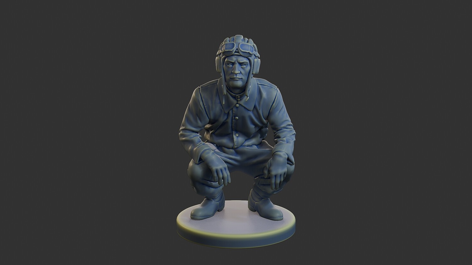 Highly detailed 3D printable model of a Russian Soviet Soldier from World War II, representing a member of the Soviet Tank Crew in action. This 3D model captures and represents an era and moment of action in history with great Fidelity and authentic uniform details, equipment, and realistic proportions. Perfect for collectors, modelers, and 3D printing professionals who seek historical accuracy and artistic quality.
